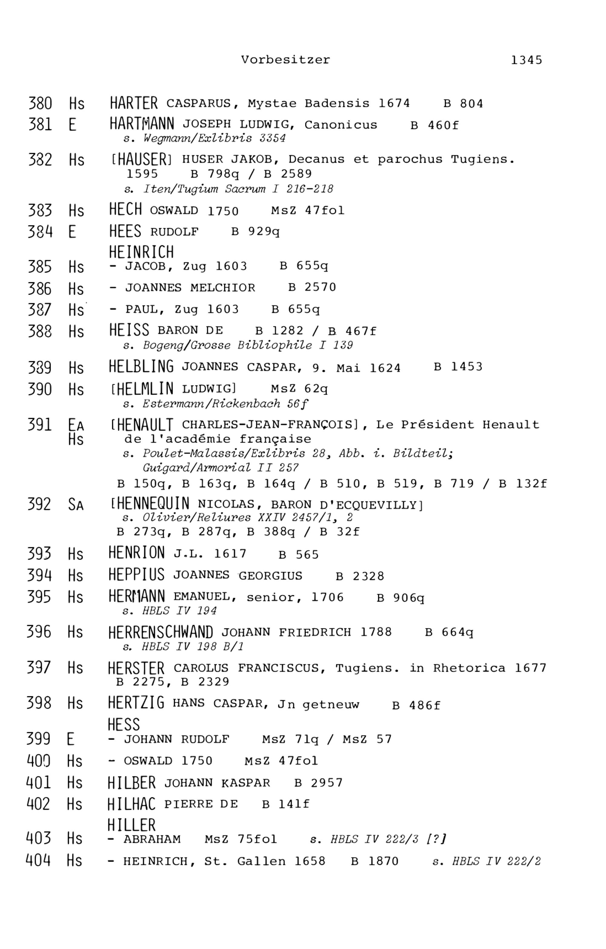 21. Register zu den Arbeiten von Beat Fidel Zurlauben