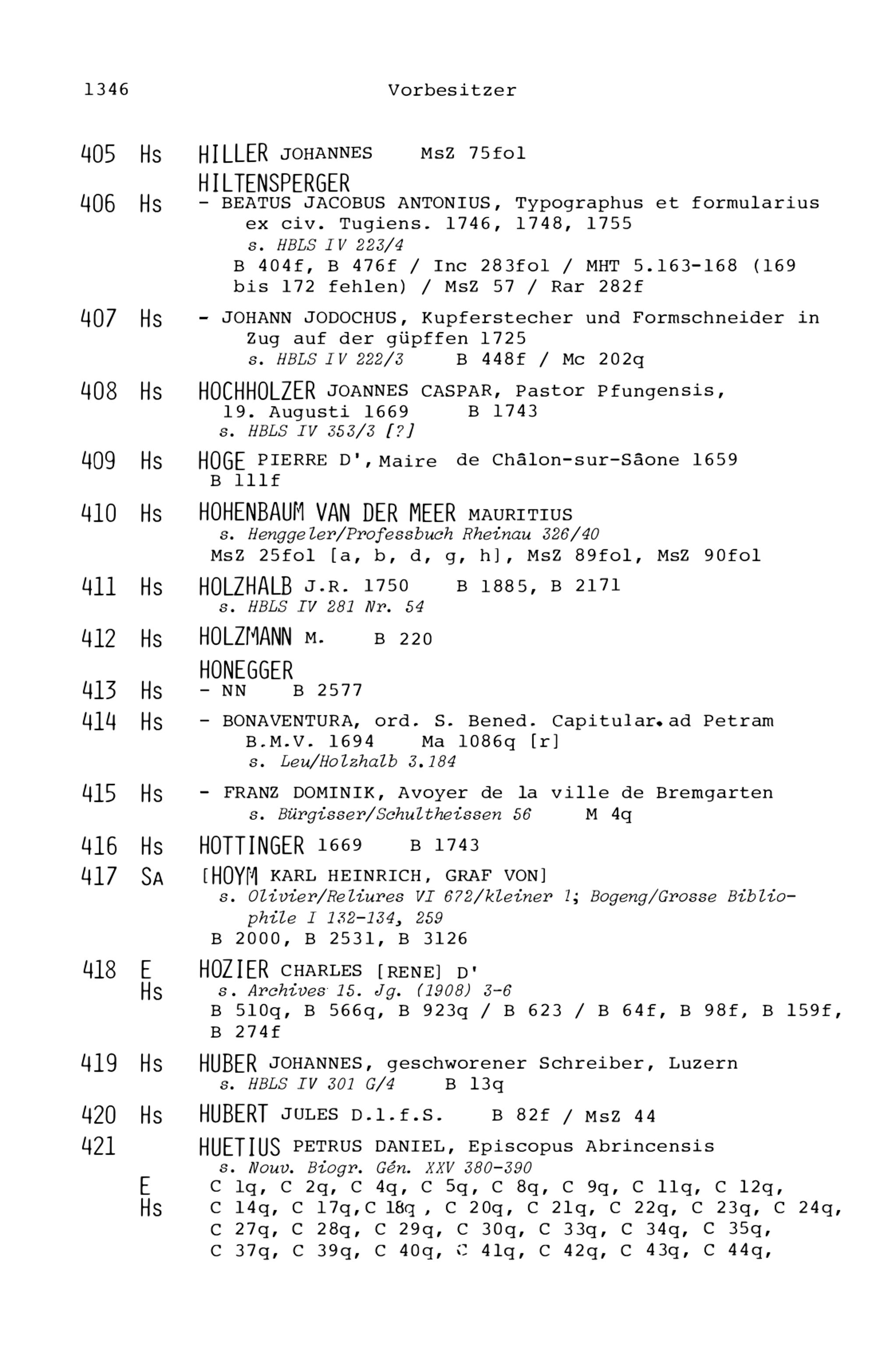 21. Register zu den Arbeiten von Beat Fidel Zurlauben