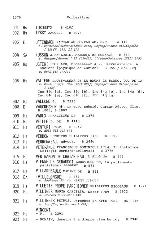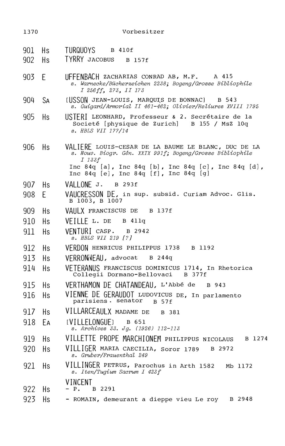 20. Bibliograohie der Arbeiten von Beat Fidel Zurlauben