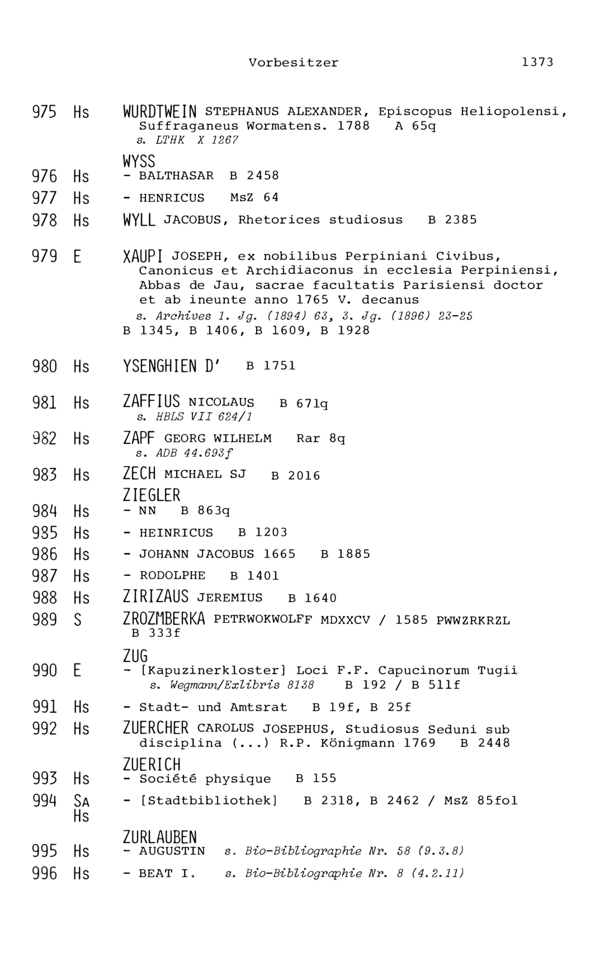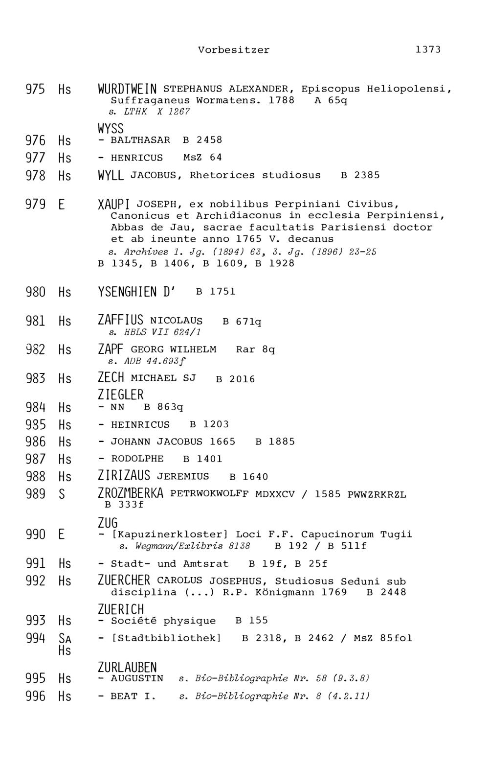12. Bio-Bibliographie der Mitglieder der Familie Zurlauben