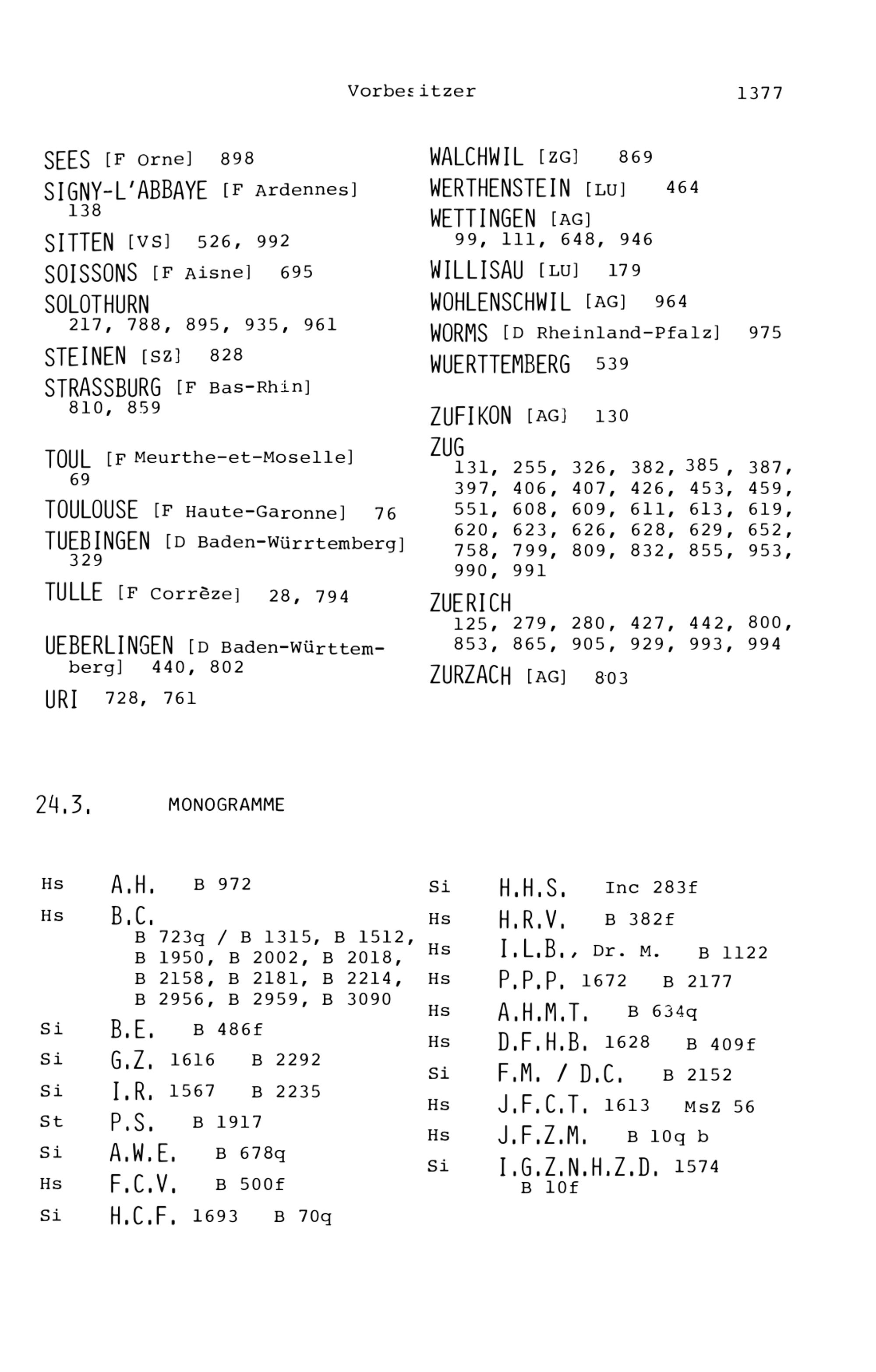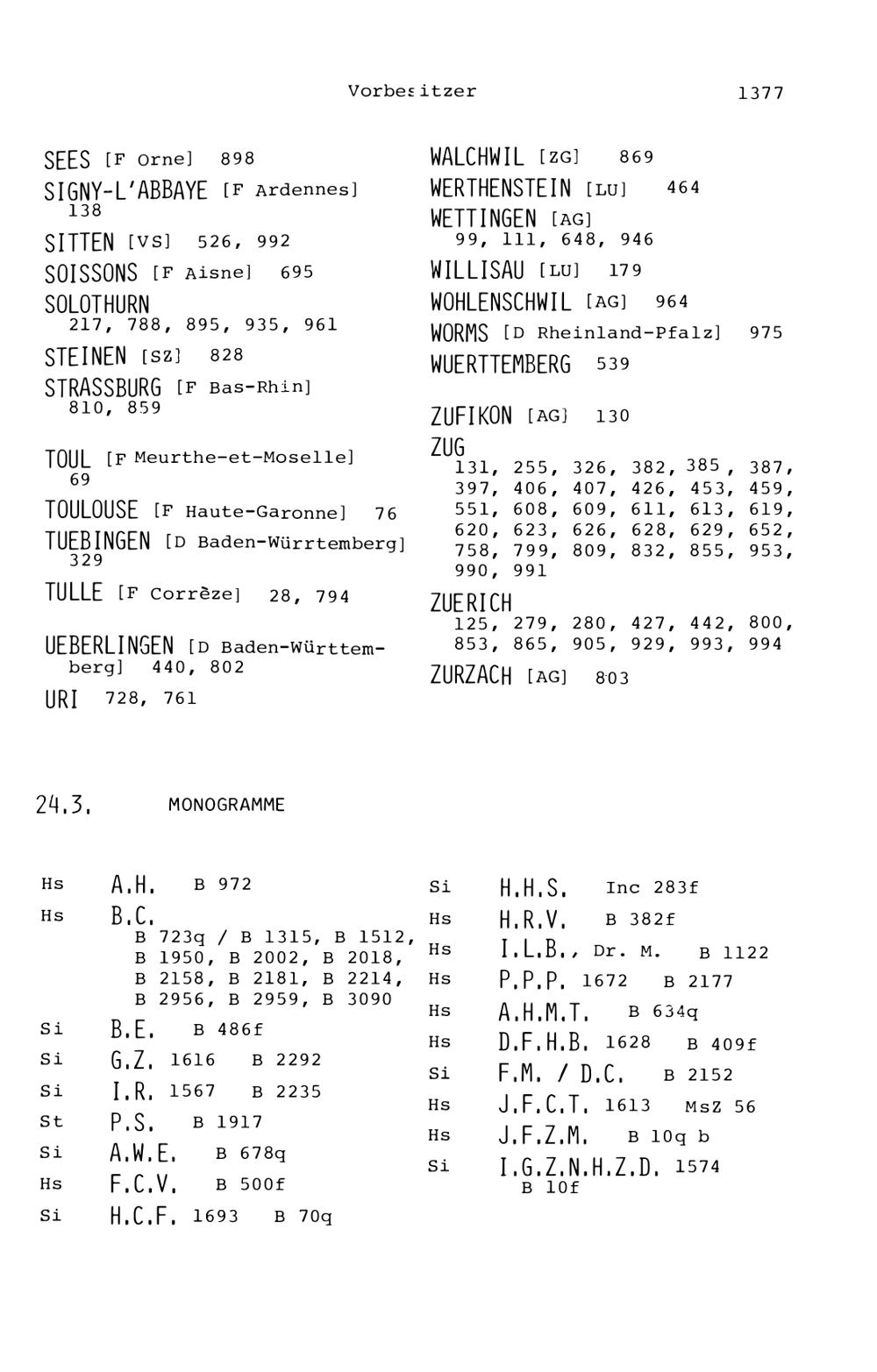21. Register zu den Arbeiten von Beat Fidel Zurlauben