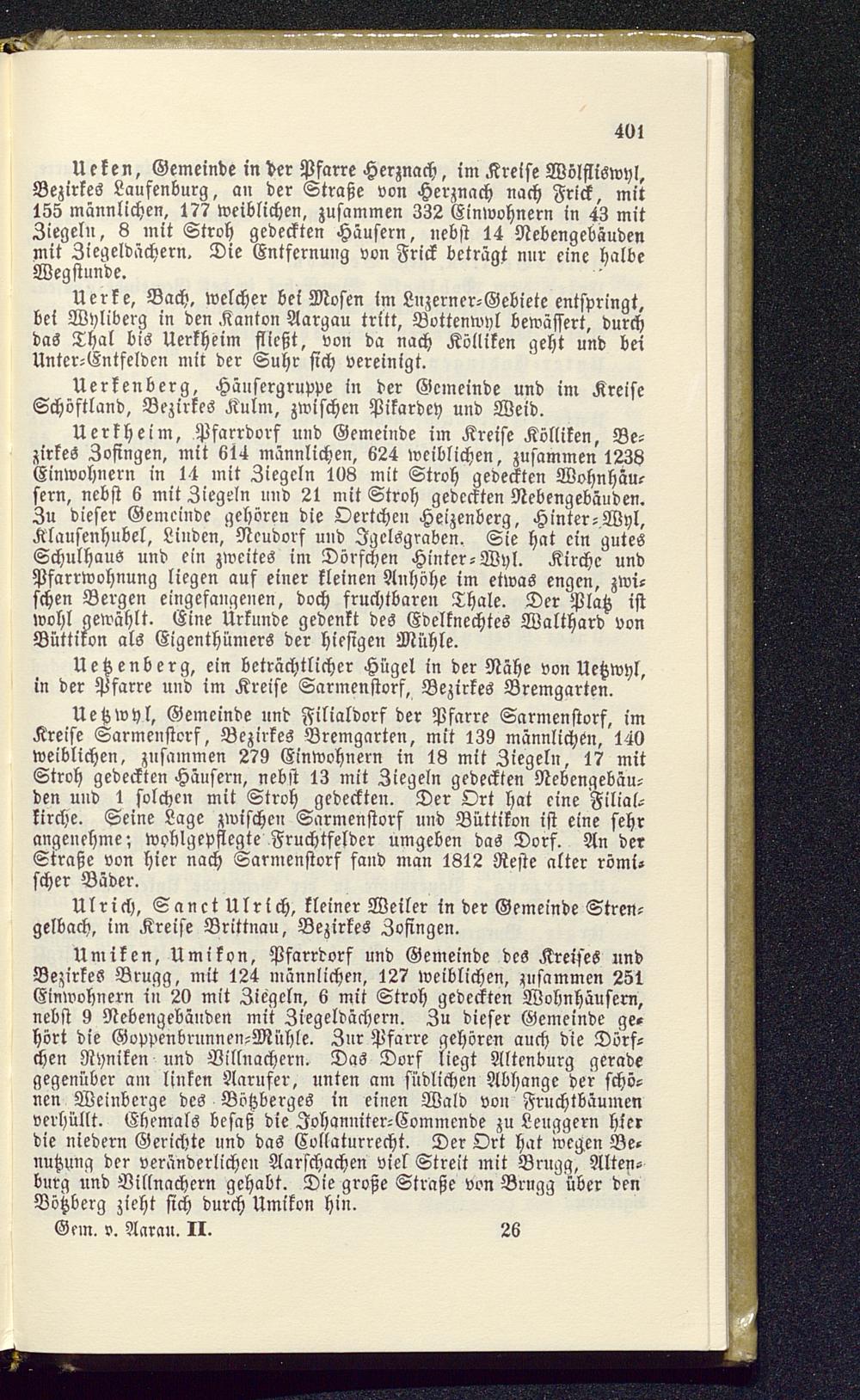 Beschreibung der Orte des Kantons Aargau in alphabetischer Ordnung