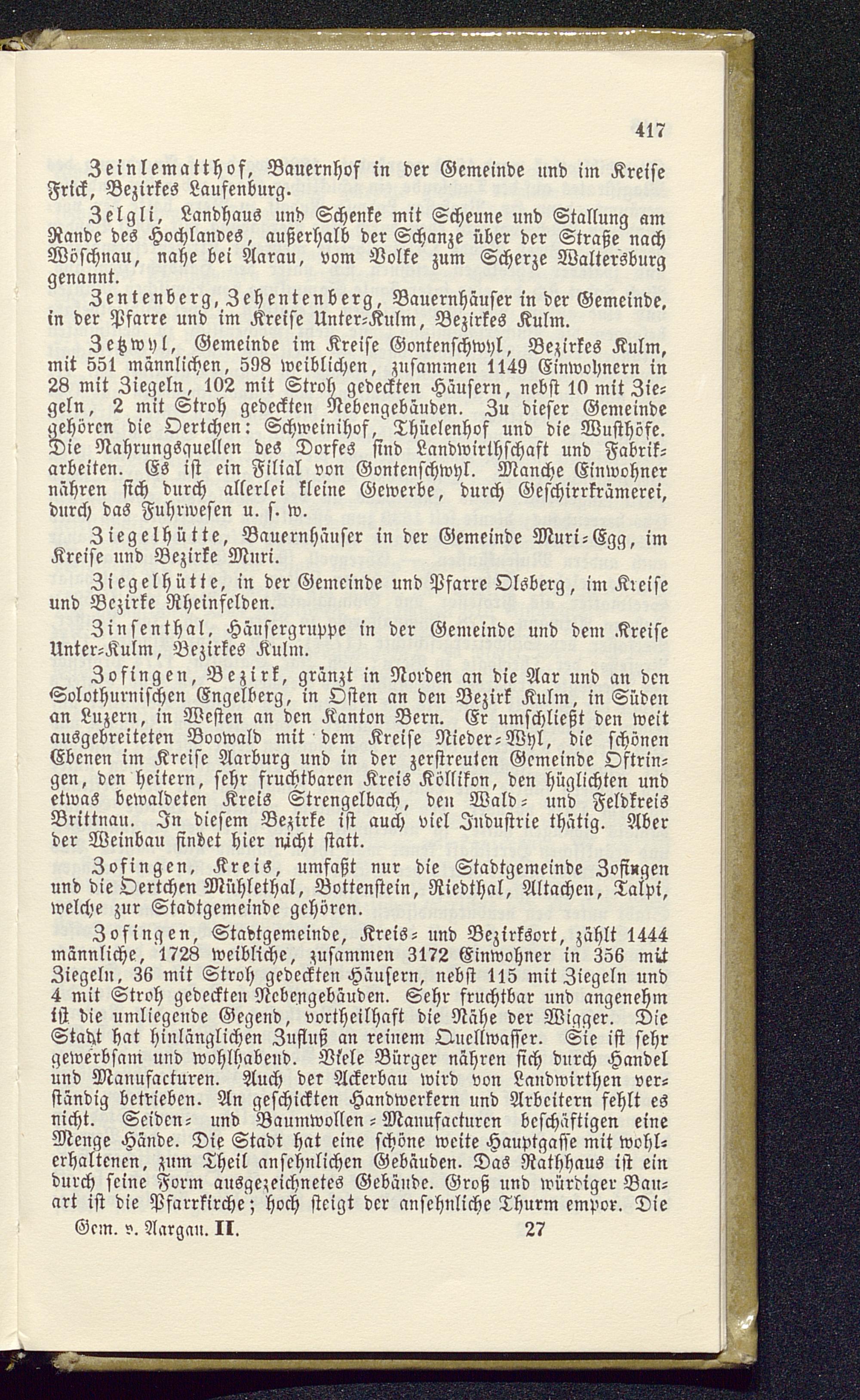 Beschreibung der Orte des Kantons Aargau in alphabetischer Ordnung
