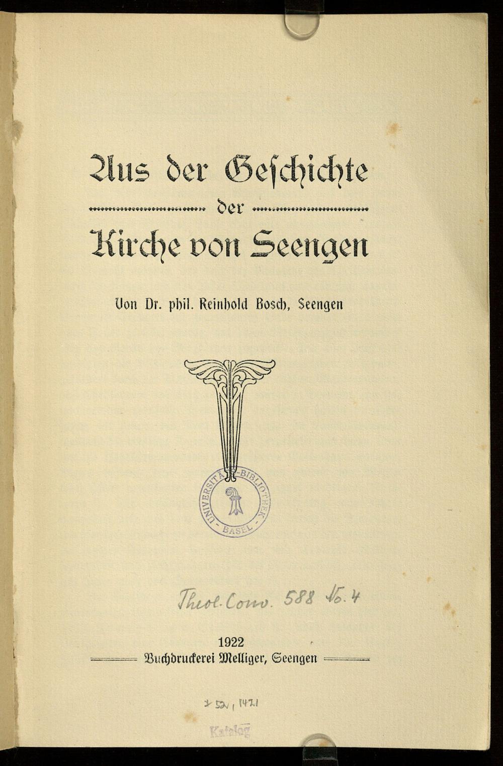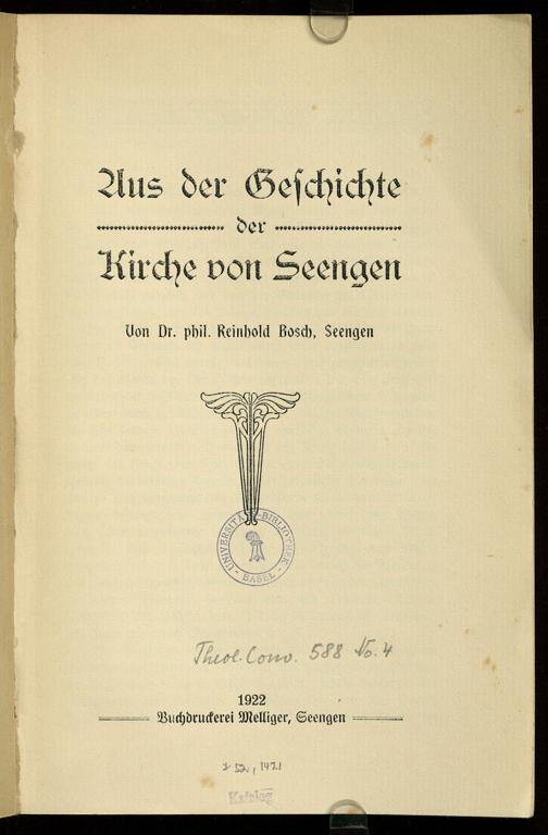 Aus der Geschichte der Kirche von Seengen / Reinhold Bosch