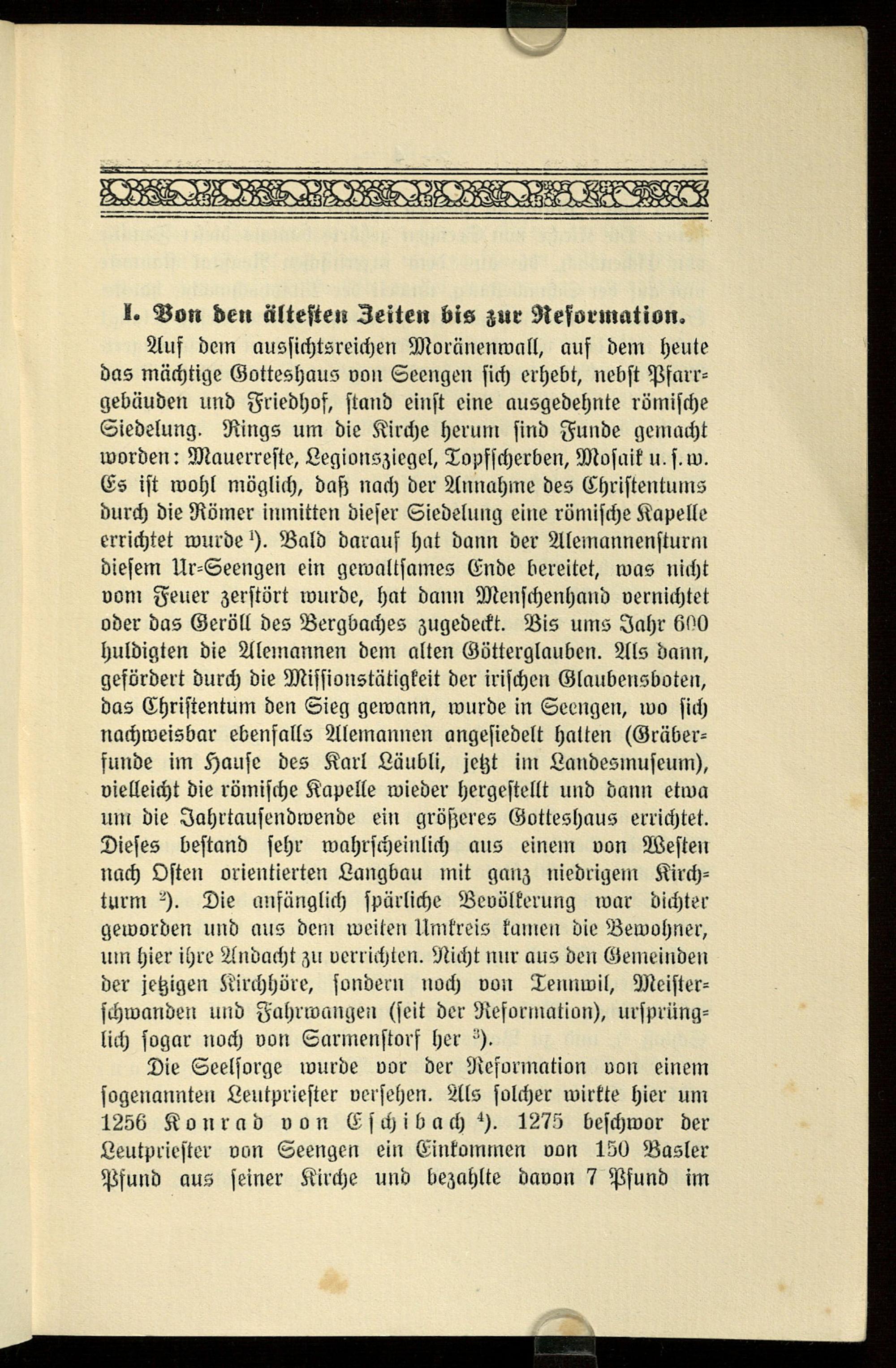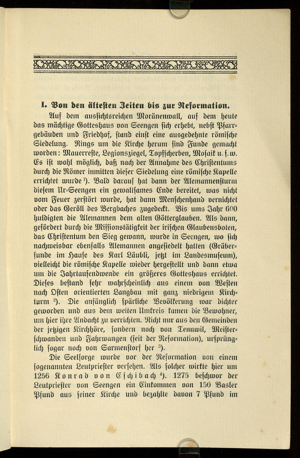 I. Von den ältesten Zeiten bis zur Reformation.