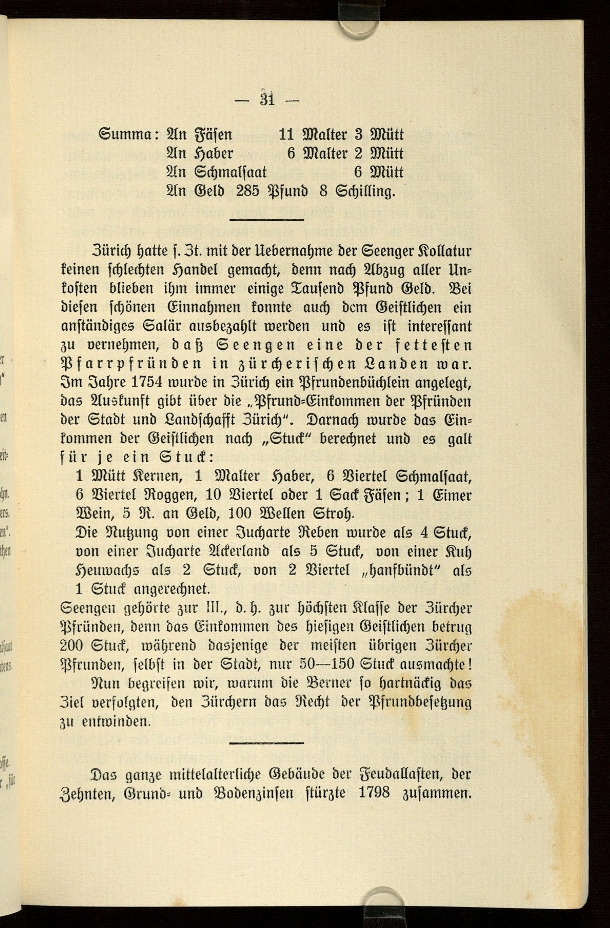 II. Von der Reformation bis zum Uebergang der Kollatur an den Aargau 1519-1837.