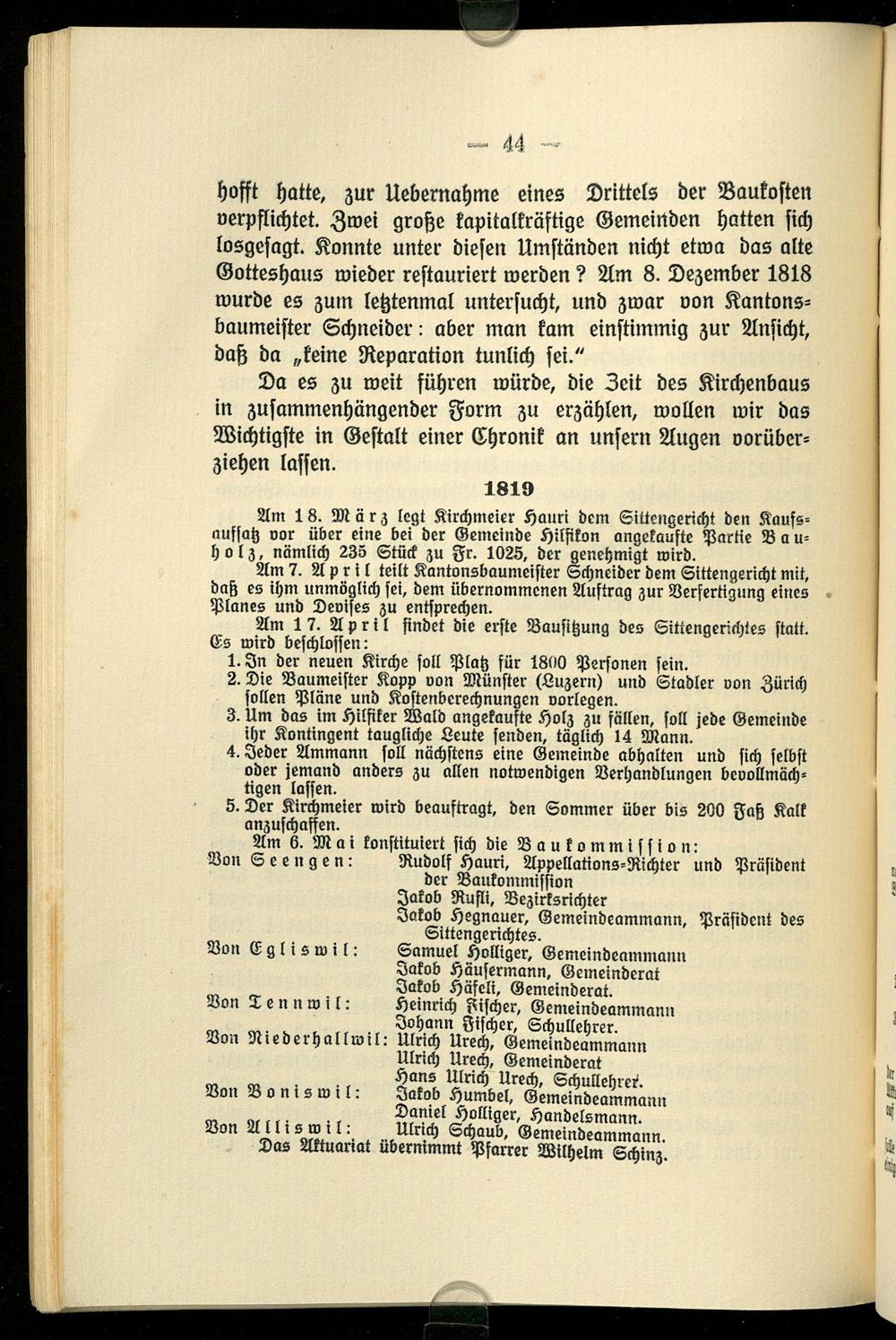 Aus der Geschichte der Kirche von Seengen