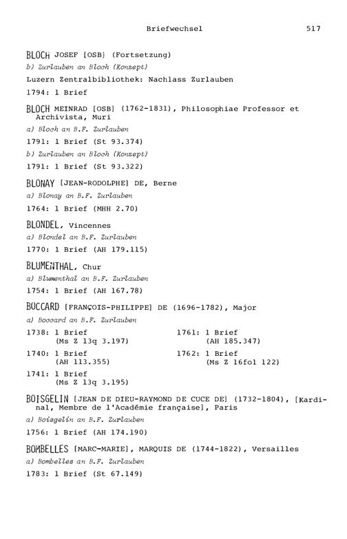 7. Der Briefwechsel von Beat Fidel Zurlauben