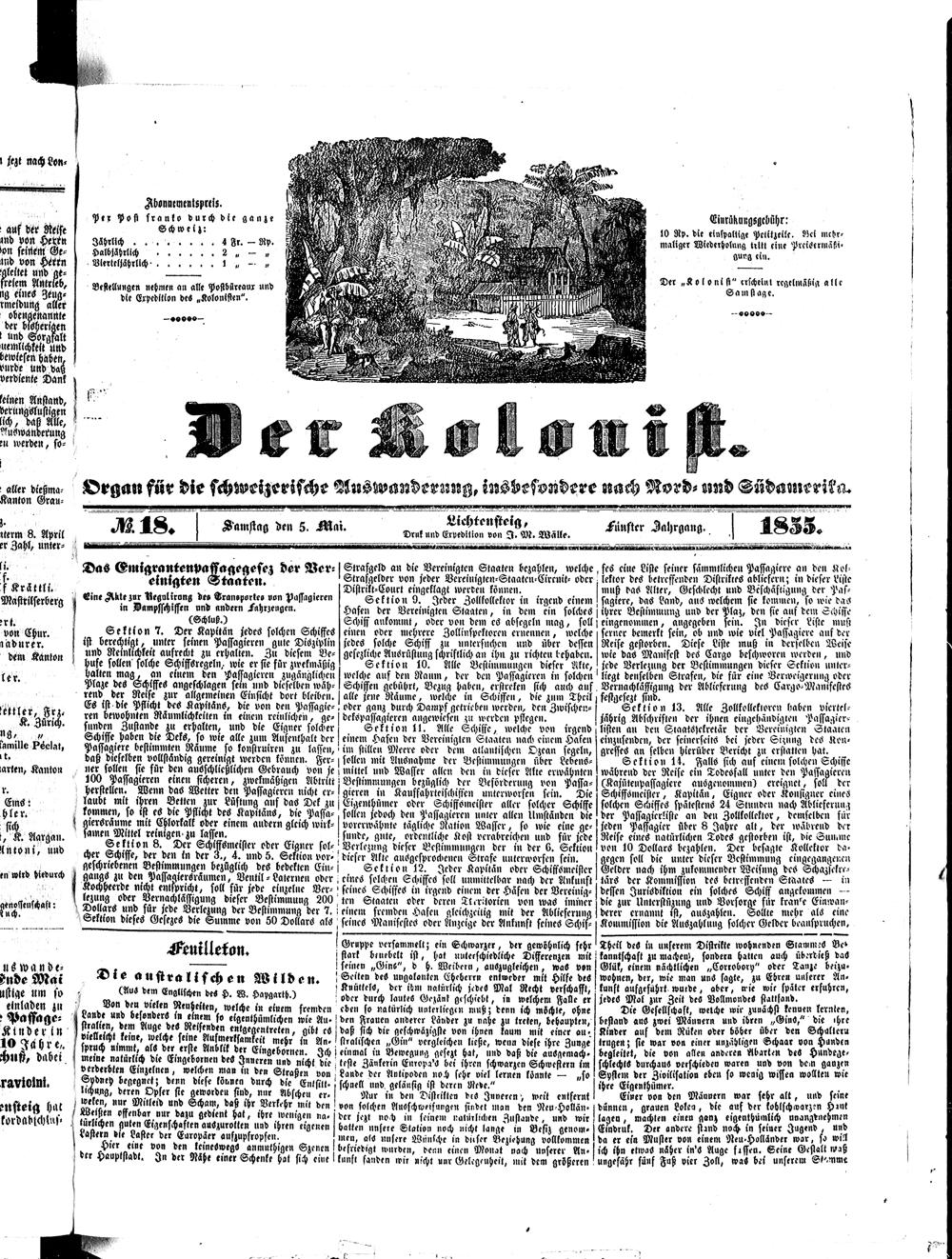 Der Kolonist. 1851-1857