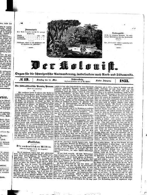Der Kolonist : Organ zum Schutze, Beistand und Belehrung schweizerischer Auswanderer