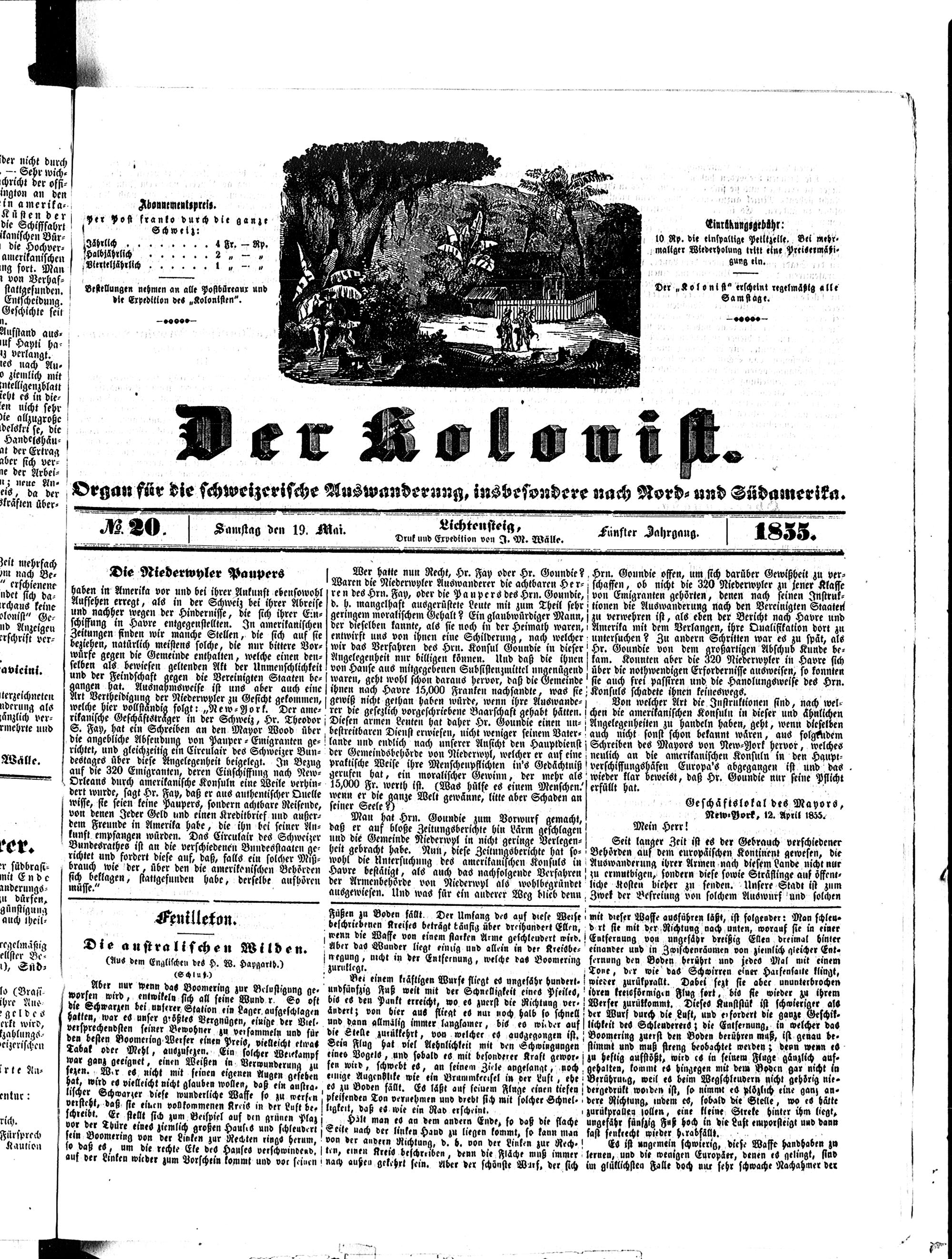 Der Kolonist : Organ zum Schutze, Beistand und Belehrung schweizerischer Auswanderer