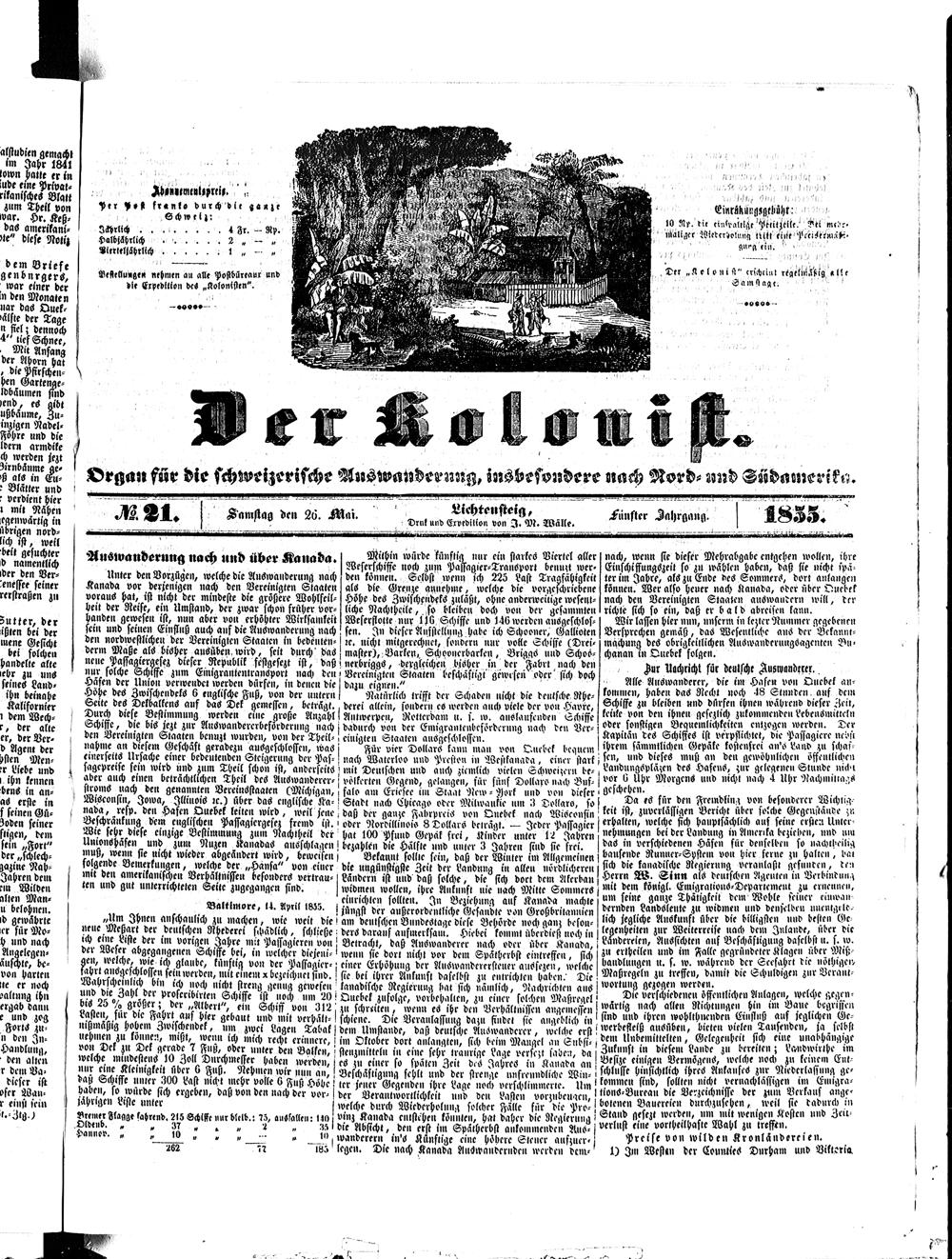 Der Kolonist. 1851-1857
