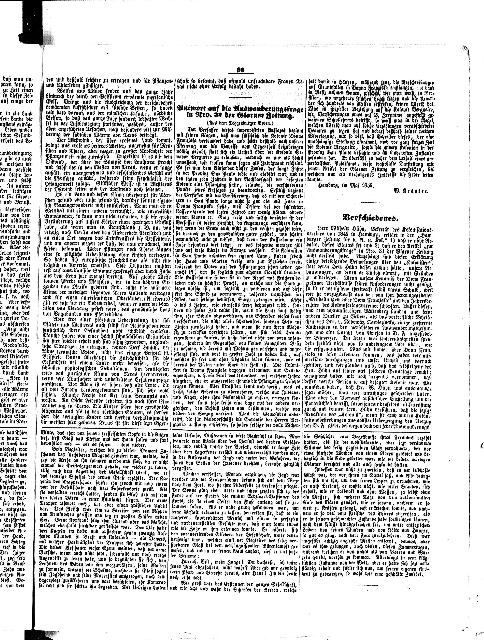 Der Kolonist. 1851-1857