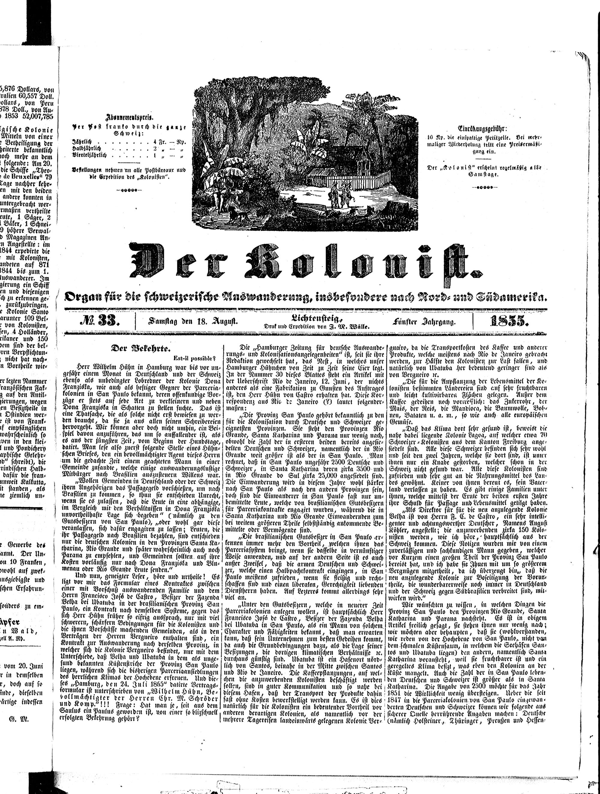 Der Kolonist. 1851-1857