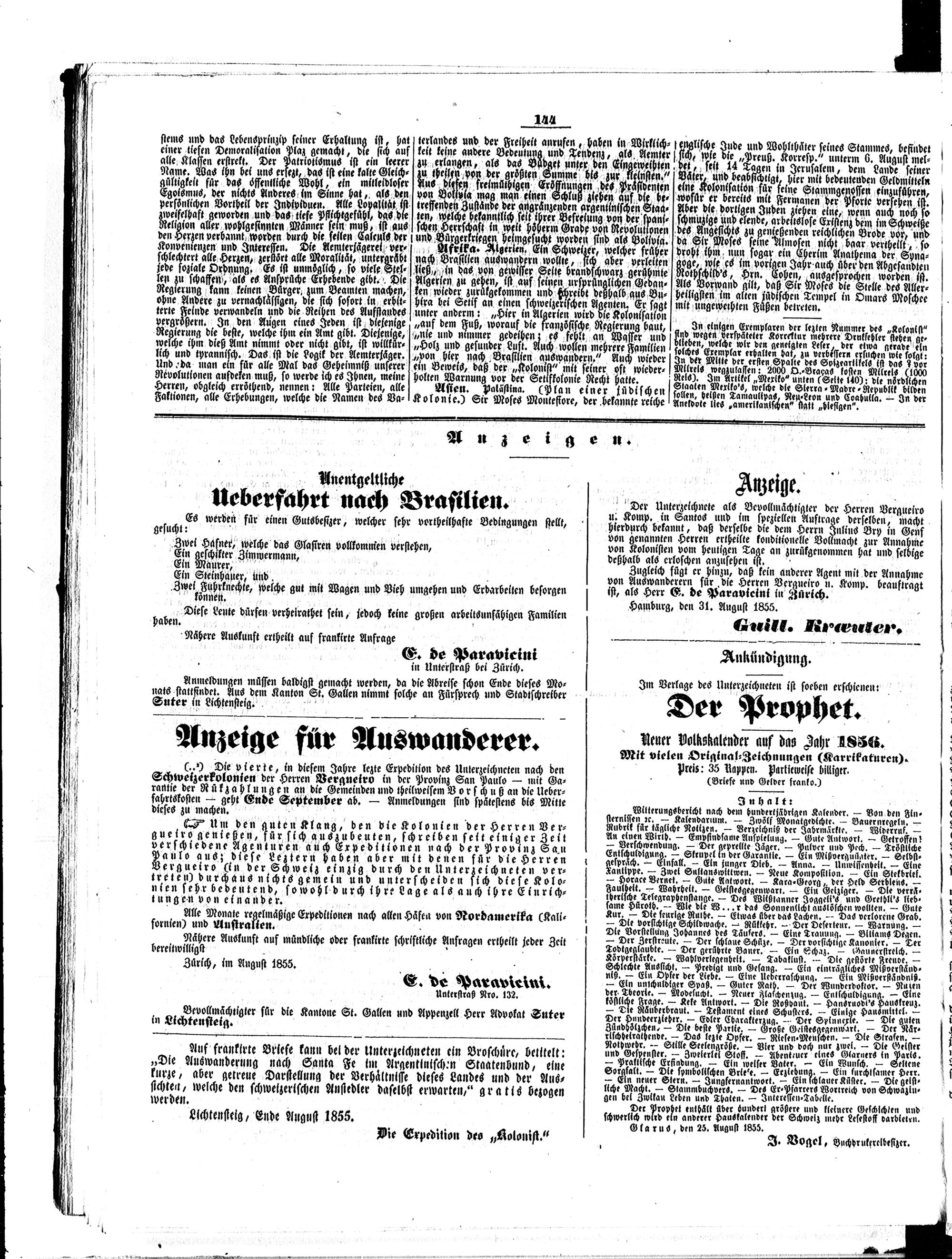 Der Kolonist : Organ zum Schutze, Beistand und Belehrung schweizerischer Auswanderer