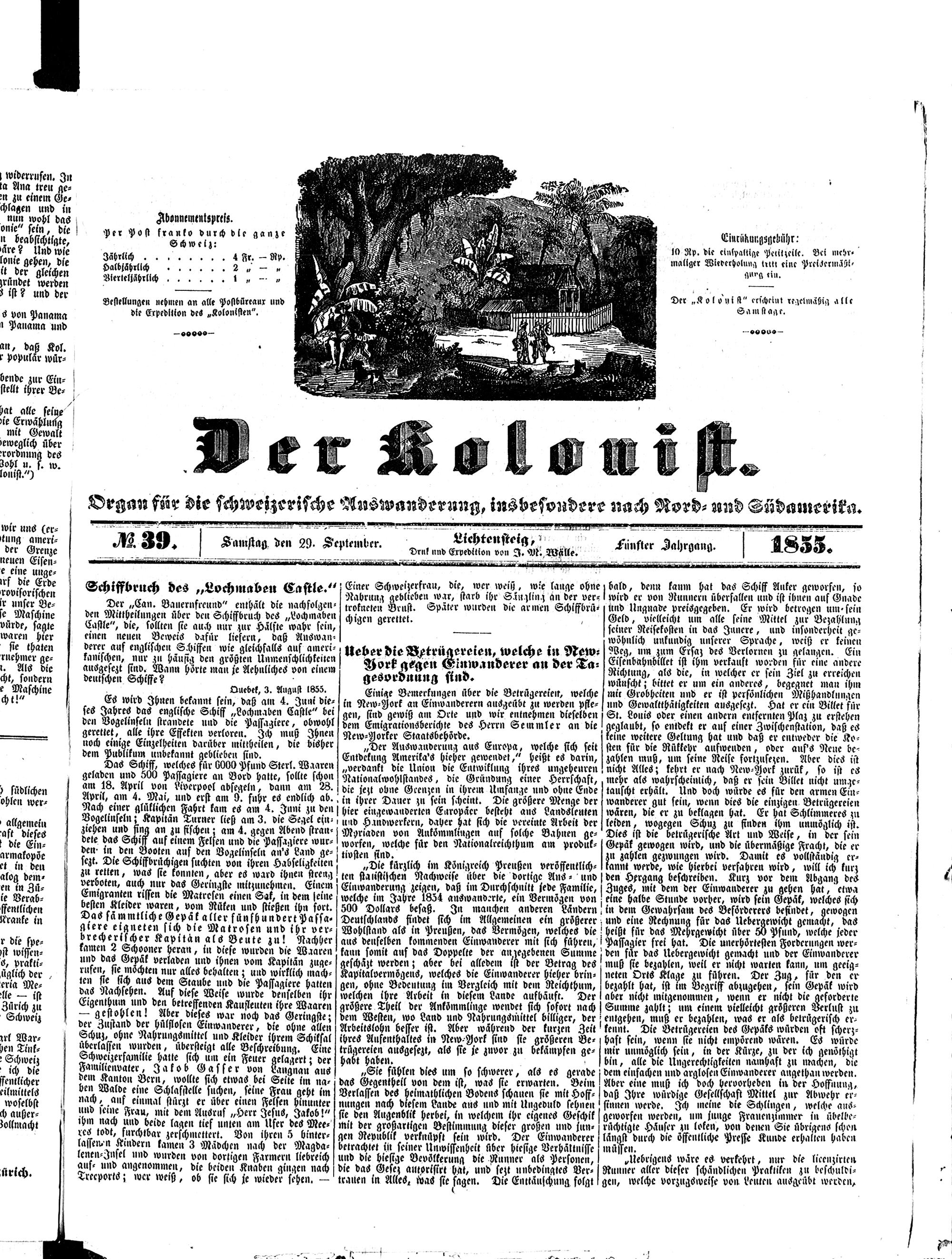Der Kolonist. 1851-1857