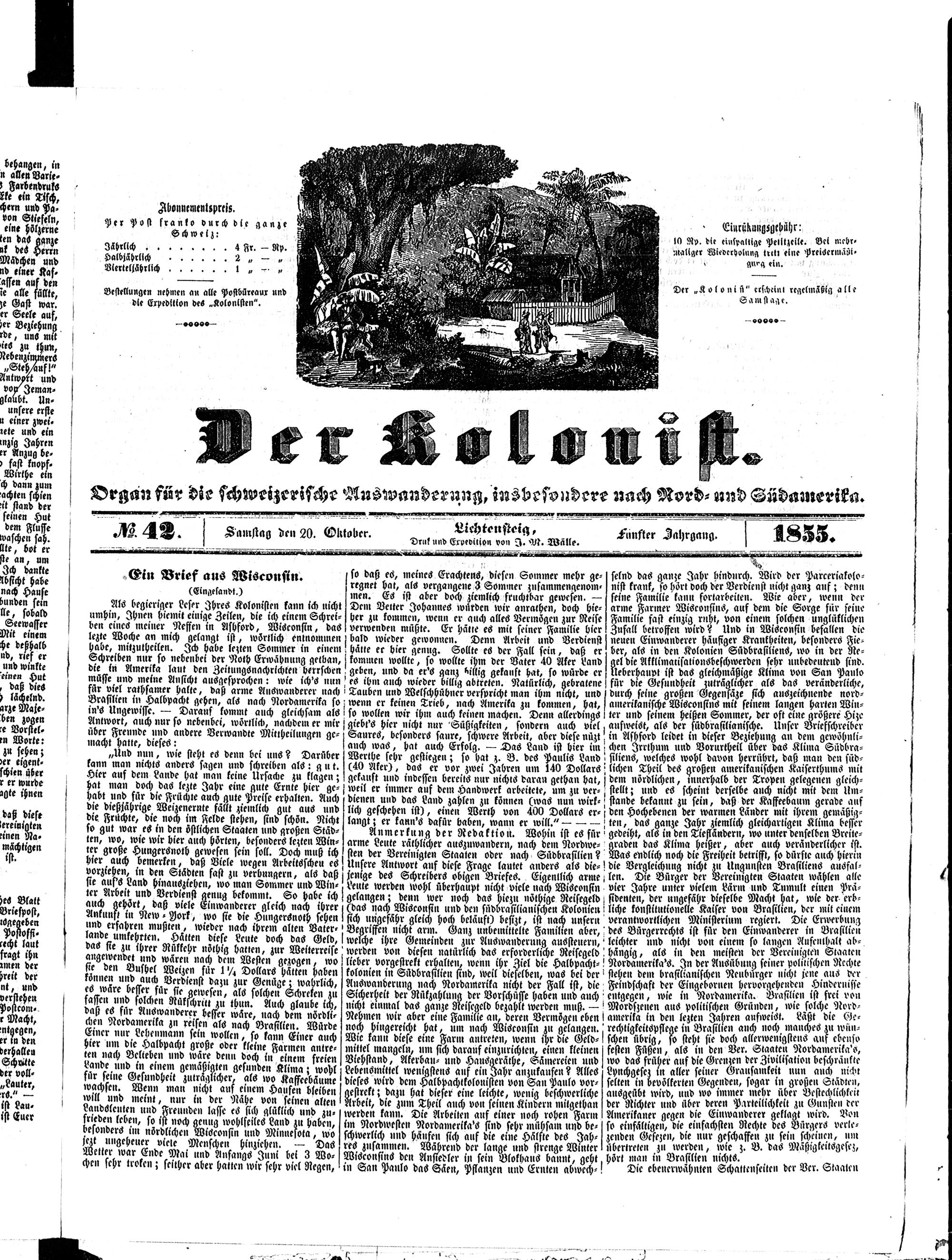 Der Kolonist : Organ zum Schutze, Beistand und Belehrung schweizerischer Auswanderer