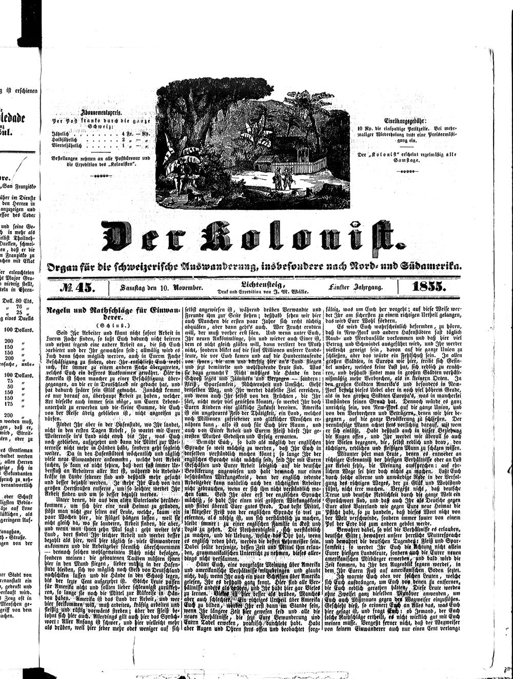 Der Kolonist : Organ zum Schutze, Beistand und Belehrung schweizerischer Auswanderer