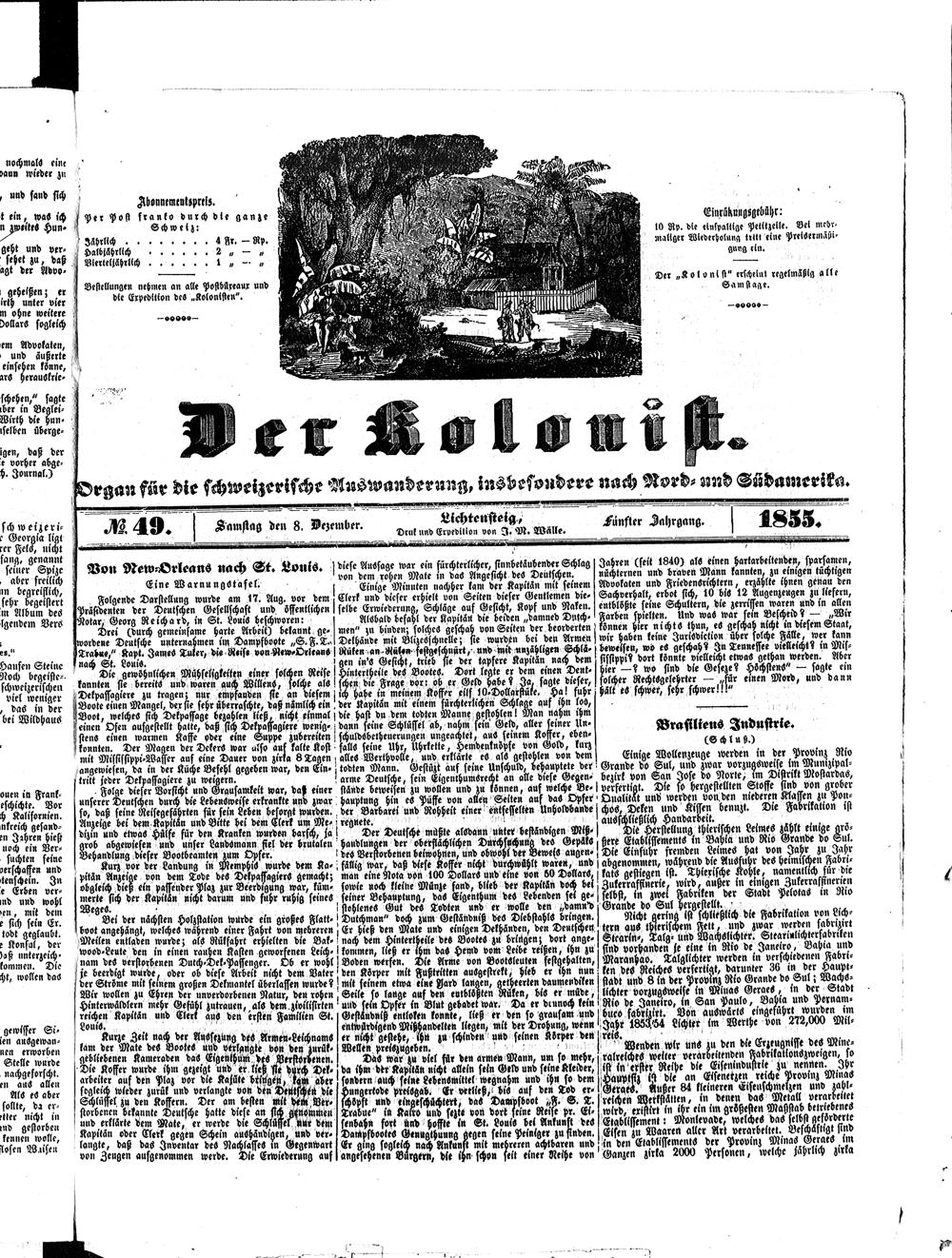 Der Kolonist : Organ zum Schutze, Beistand und Belehrung schweizerischer Auswanderer