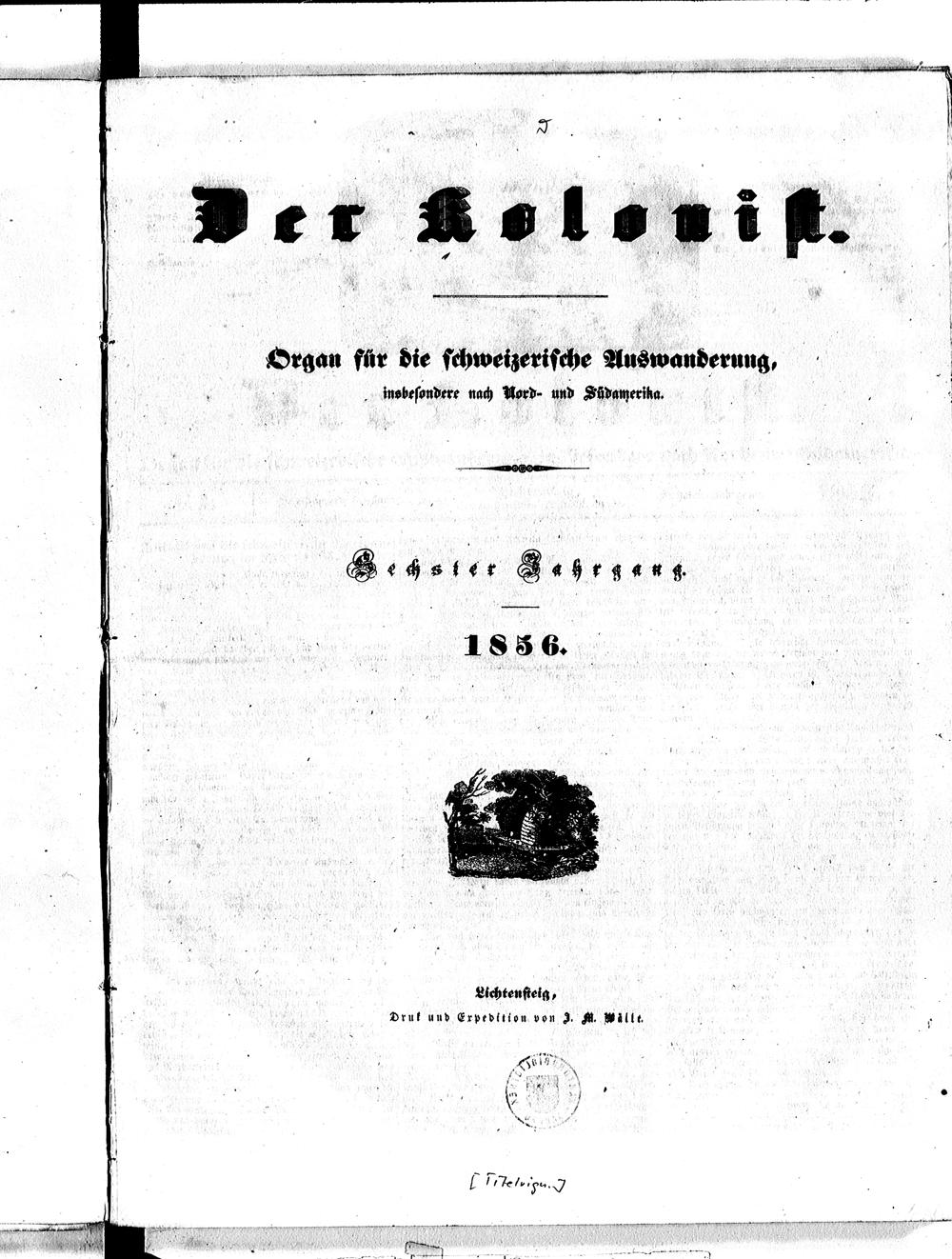 Der Kolonist : Organ zum Schutze, Beistand und Belehrung schweizerischer Auswanderer