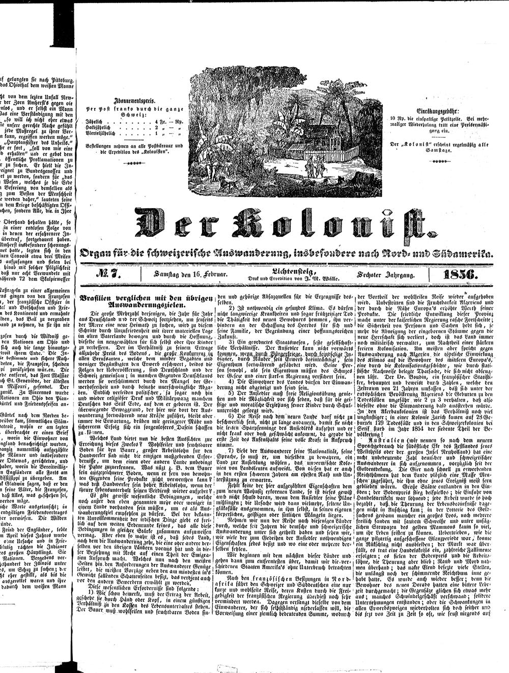 Der Kolonist. 1851-1857