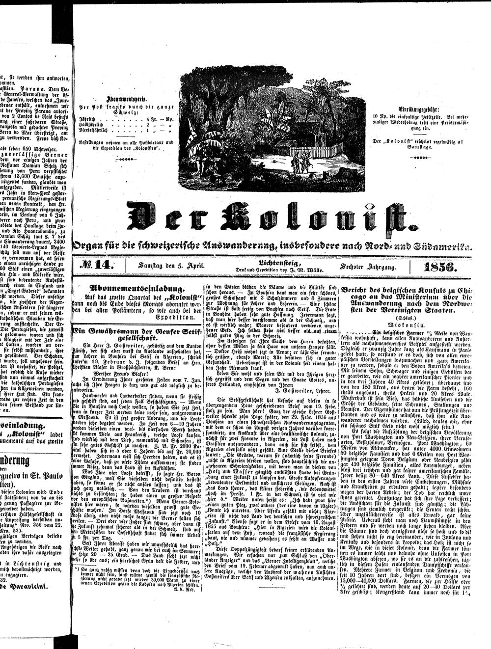 Der Kolonist. 1851-1857