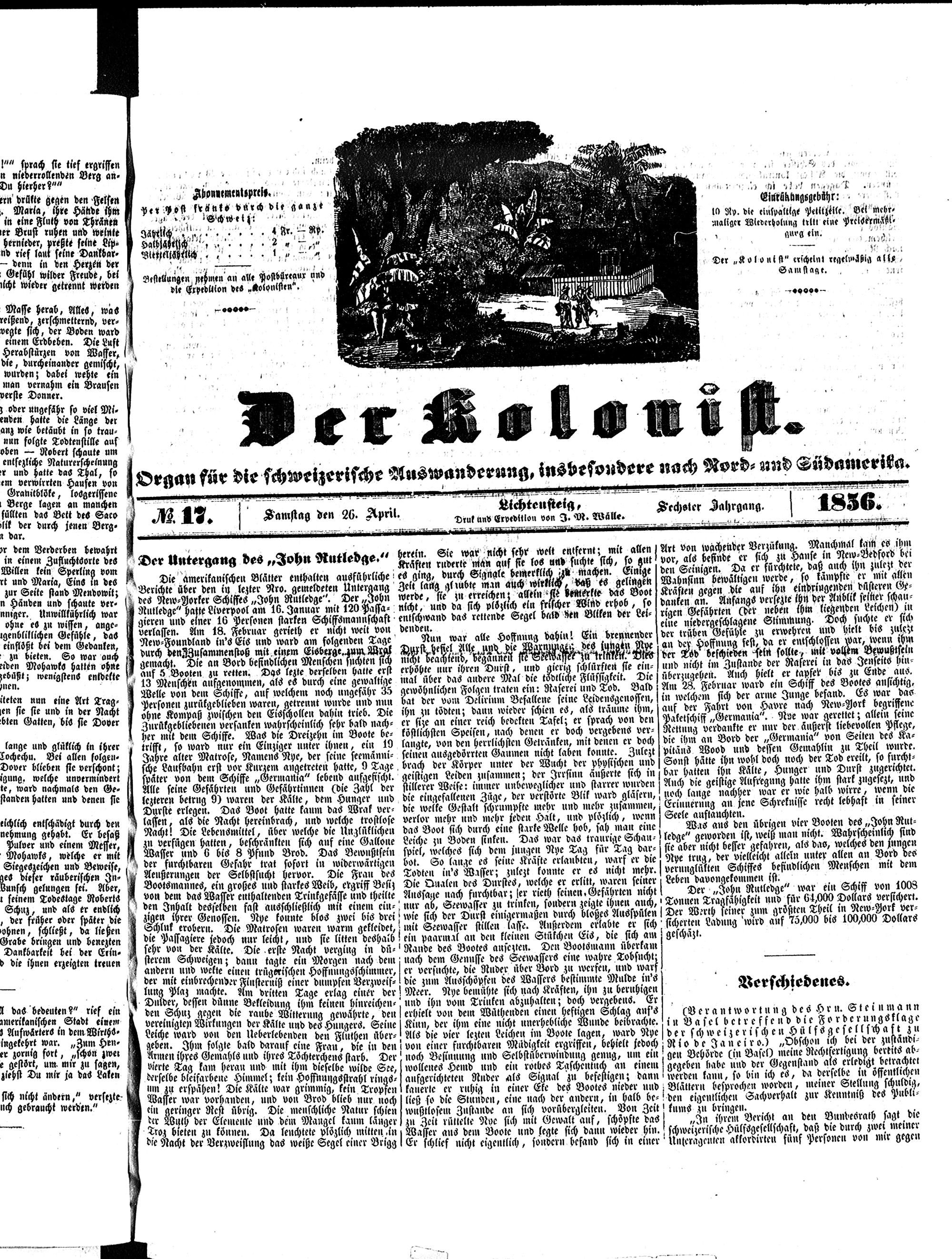 Der Kolonist : Organ zum Schutze, Beistand und Belehrung schweizerischer Auswanderer