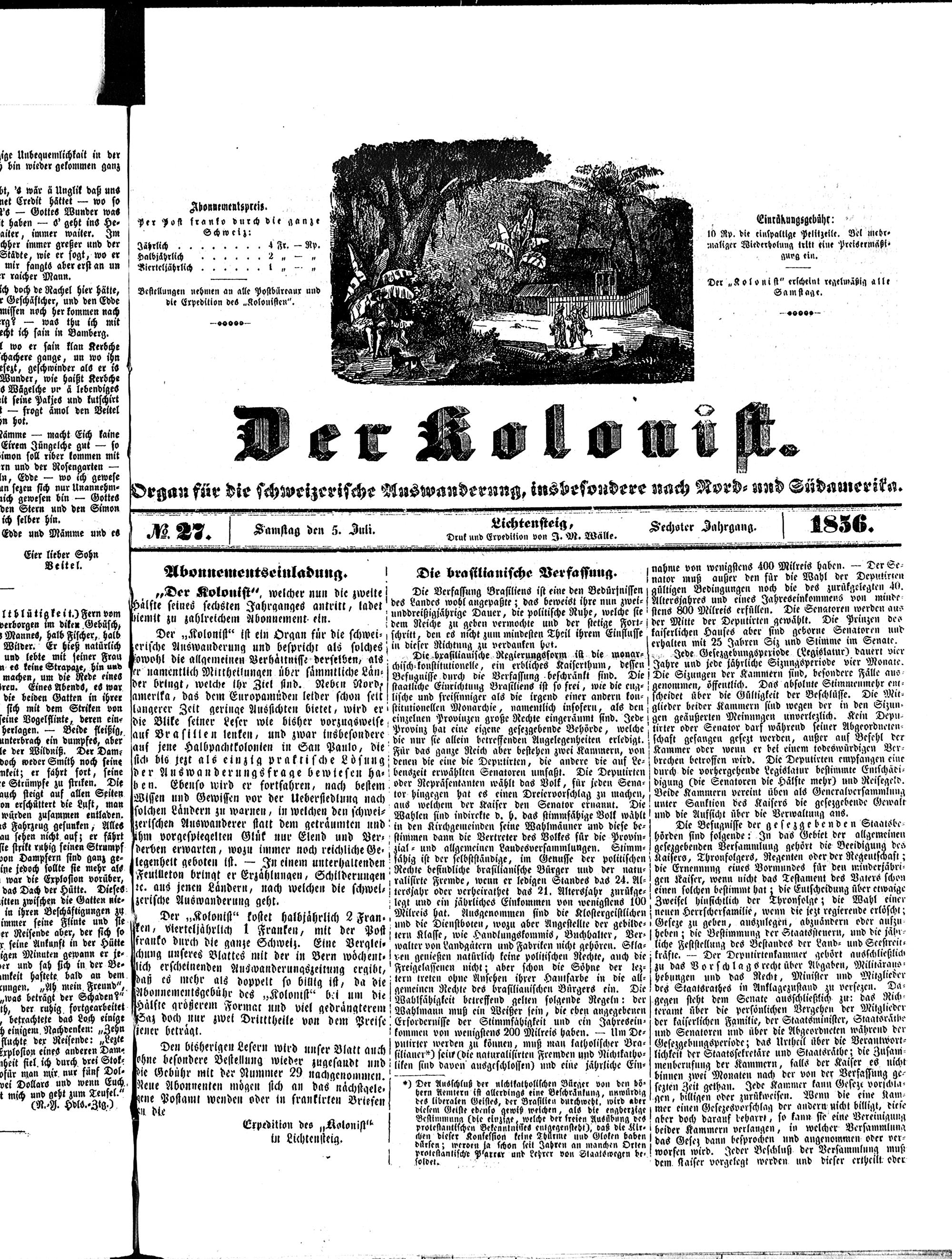 Der Kolonist. 1851-1857