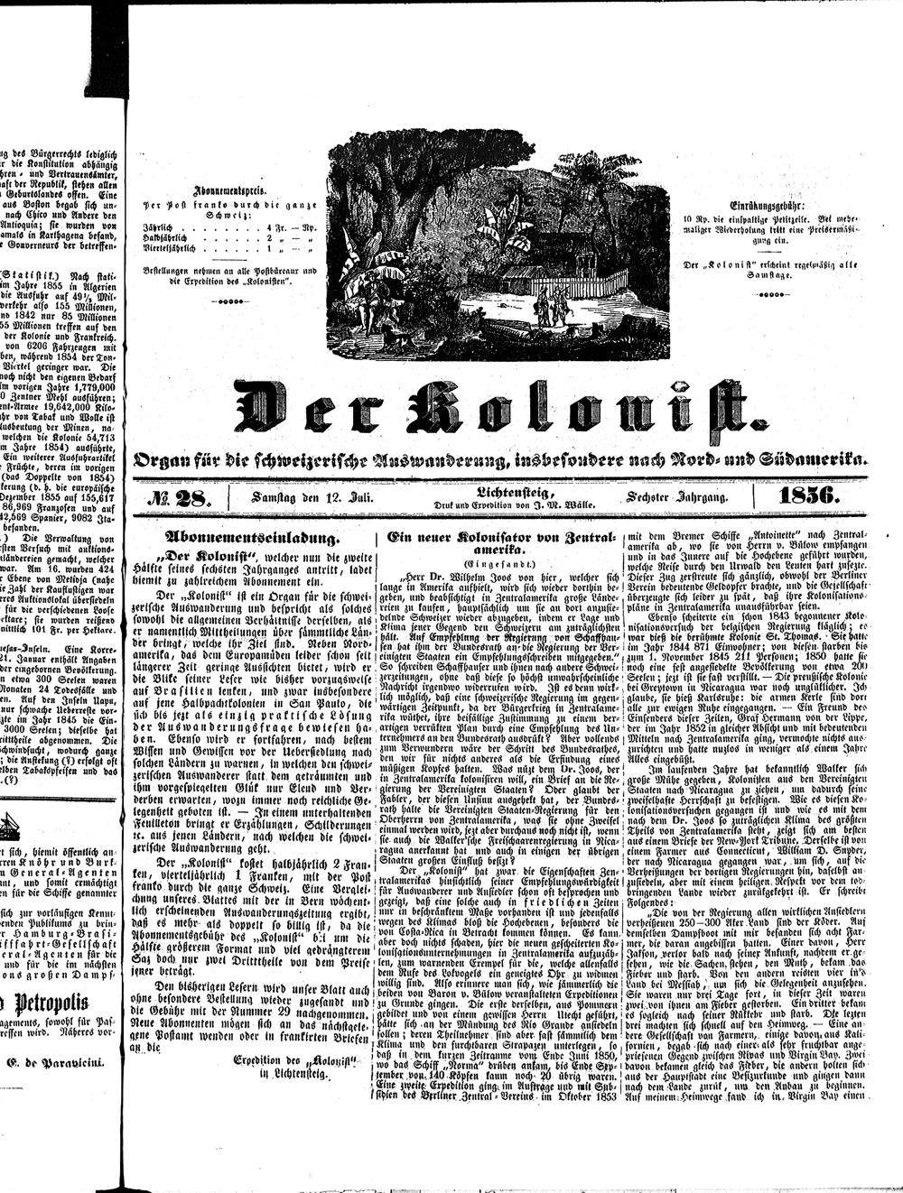 Der Kolonist : Organ zum Schutze, Beistand und Belehrung schweizerischer Auswanderer
