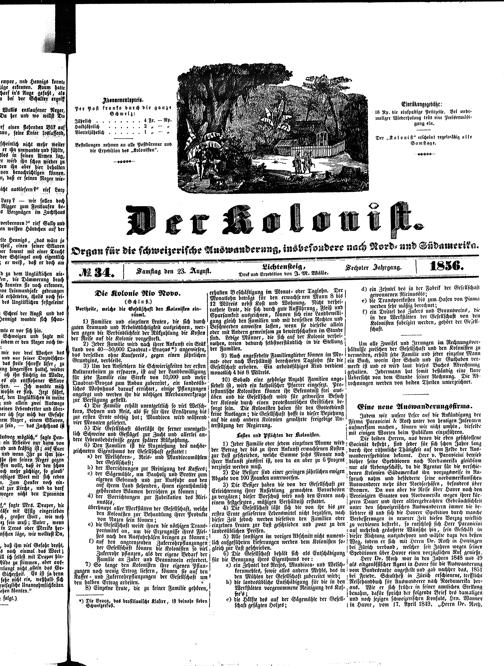 Der Kolonist : Organ zum Schutze, Beistand und Belehrung schweizerischer Auswanderer