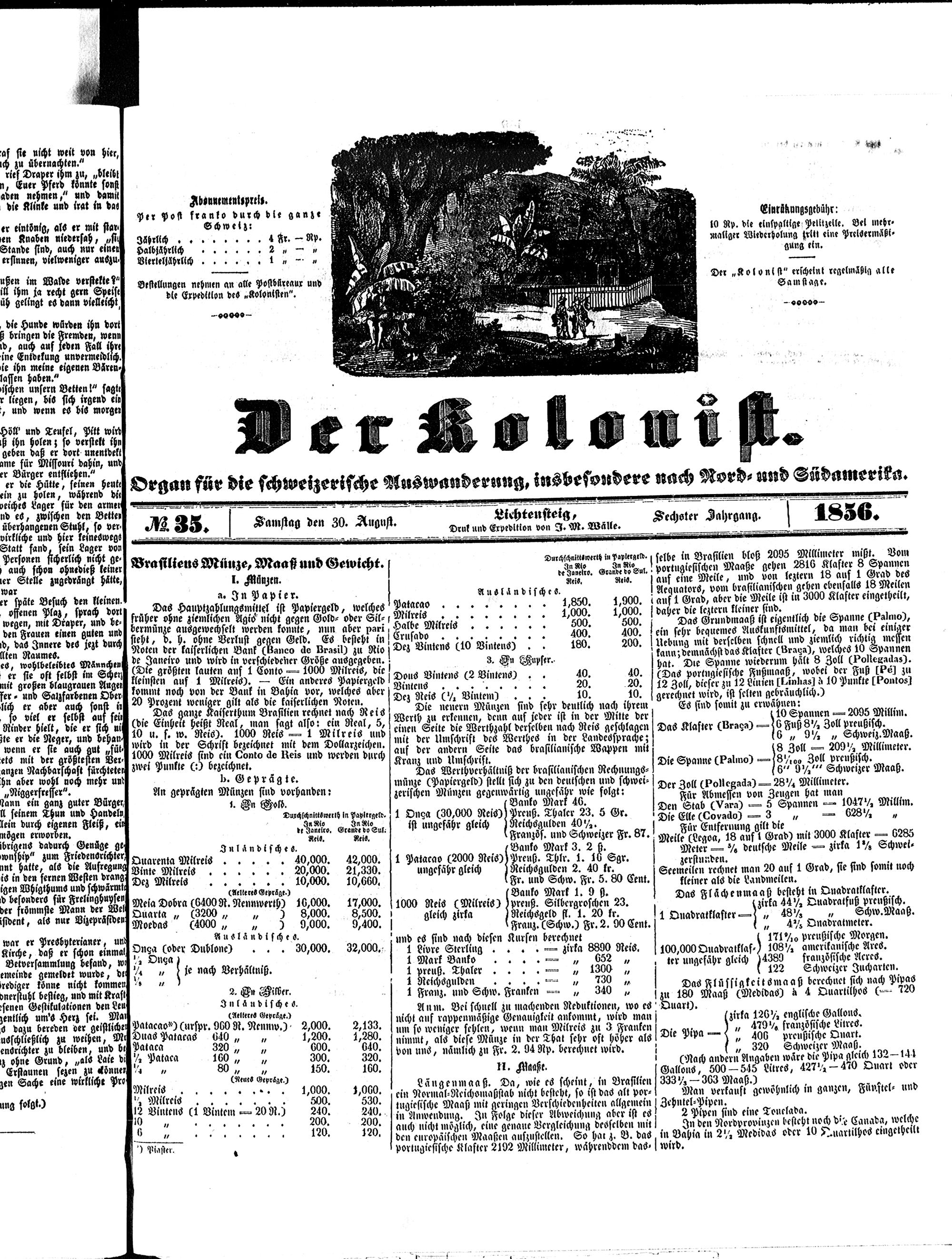 Der Kolonist : Organ zum Schutze, Beistand und Belehrung schweizerischer Auswanderer