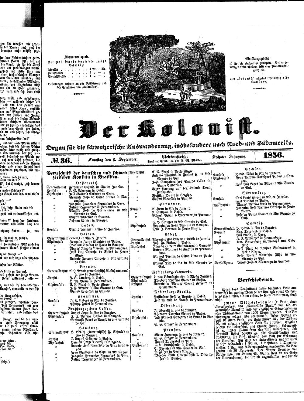Der Kolonist : Organ zum Schutze, Beistand und Belehrung schweizerischer Auswanderer