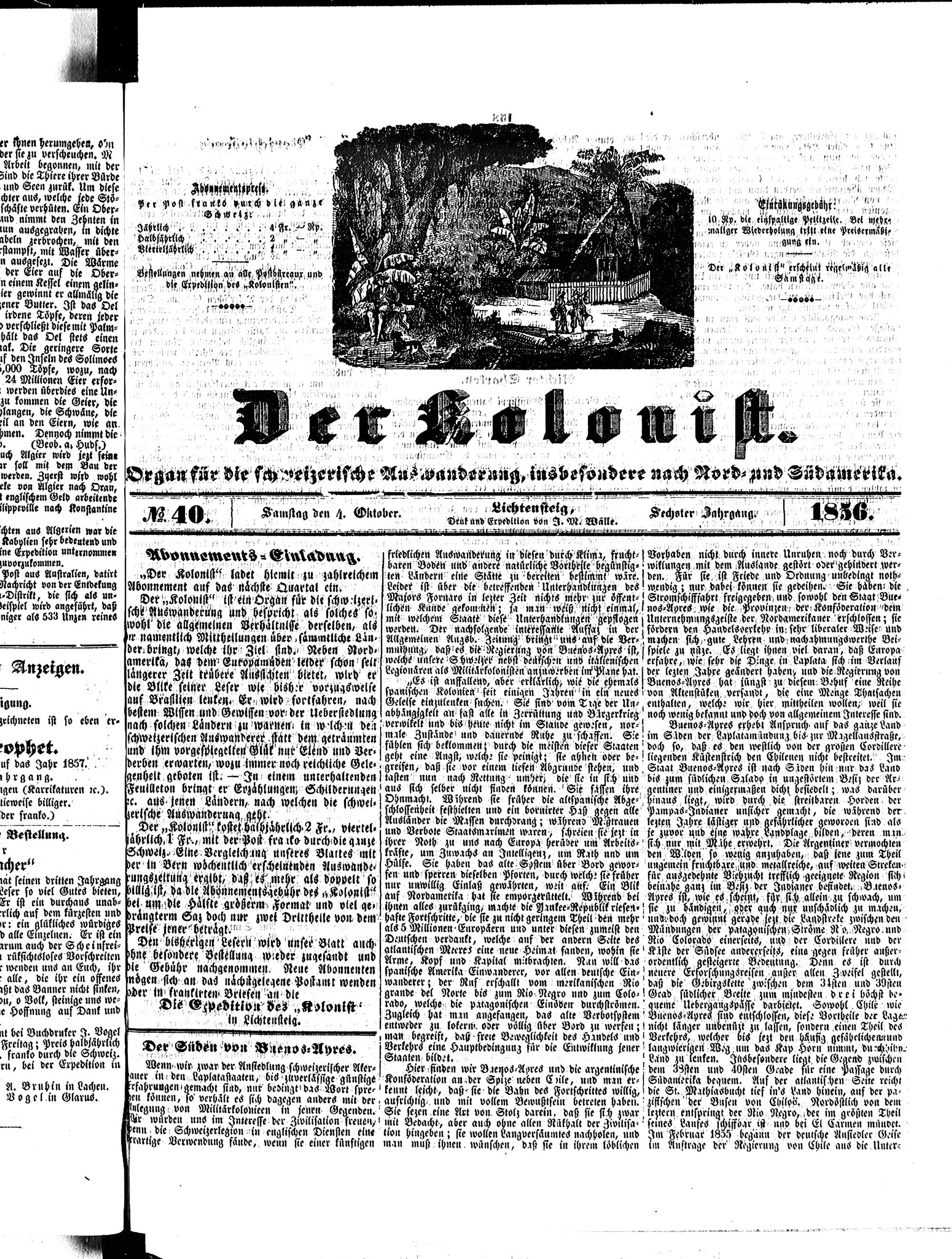 Der Kolonist : Organ zum Schutze, Beistand und Belehrung schweizerischer Auswanderer