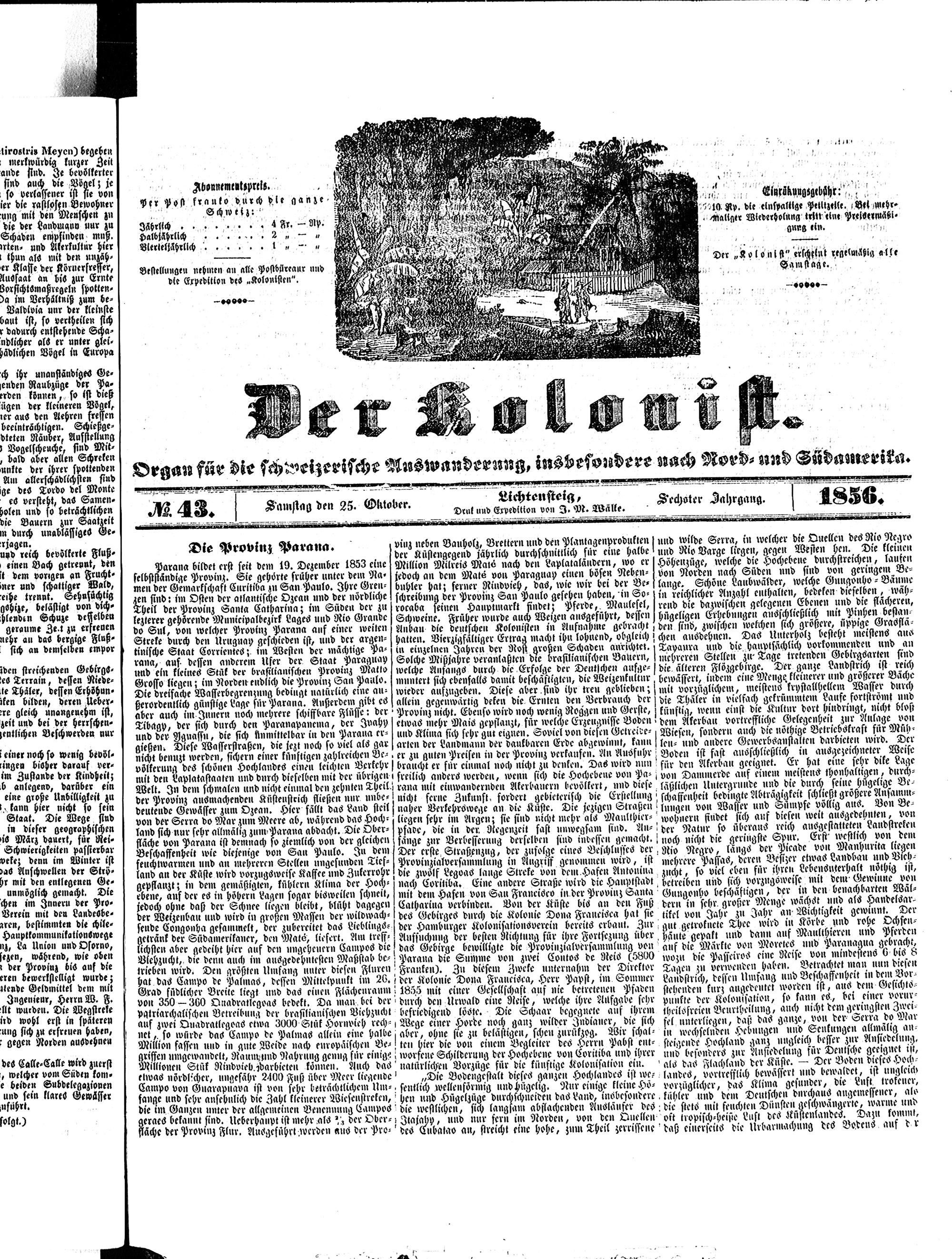 Der Kolonist. 1851-1857