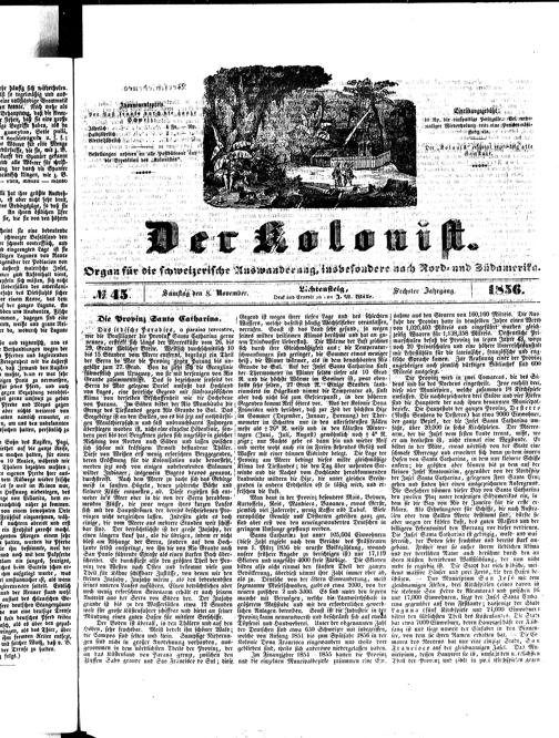Der Kolonist : Organ zum Schutze, Beistand und Belehrung schweizerischer Auswanderer