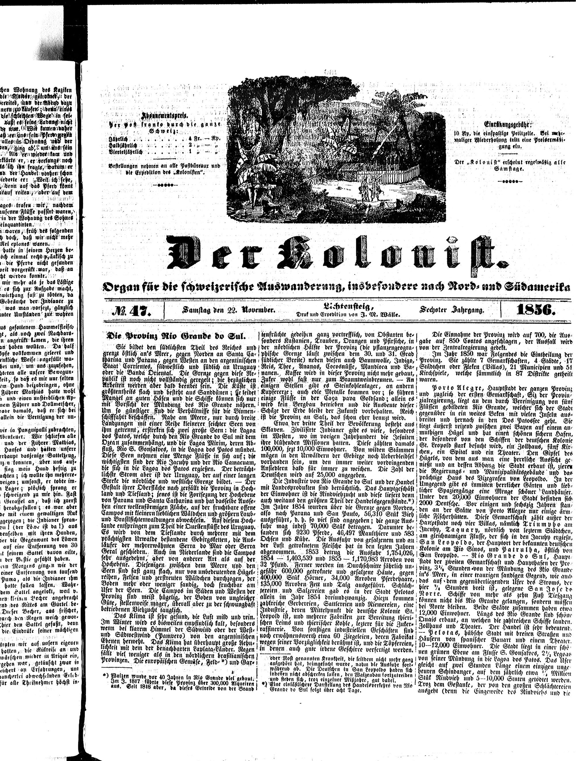 Der Kolonist : Organ zum Schutze, Beistand und Belehrung schweizerischer Auswanderer