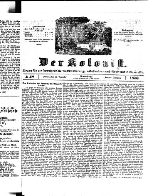 Der Kolonist : Organ zum Schutze, Beistand und Belehrung schweizerischer Auswanderer