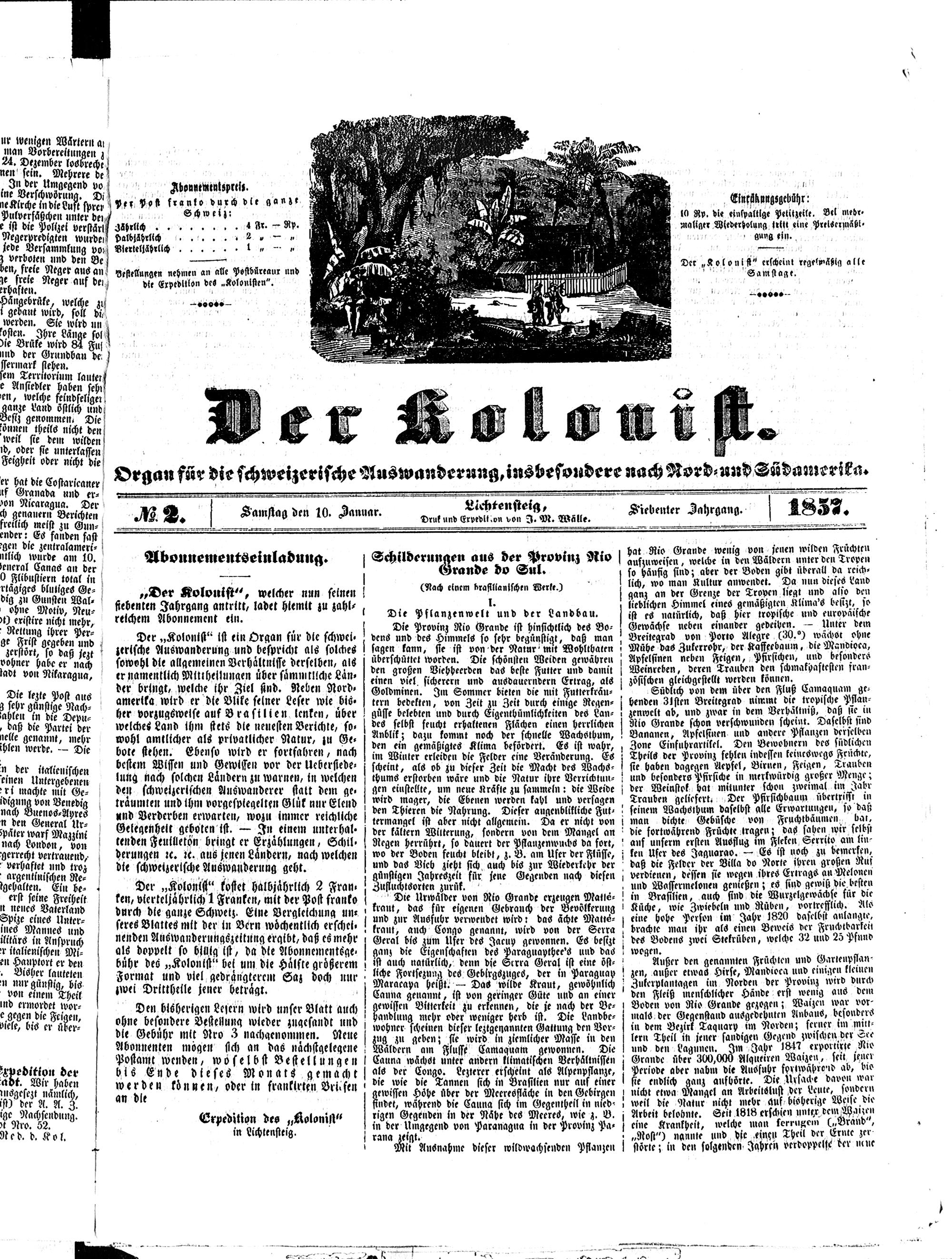 Der Kolonist : Organ zum Schutze, Beistand und Belehrung schweizerischer Auswanderer