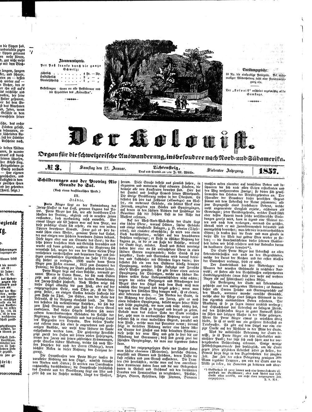 Der Kolonist : Organ zum Schutze, Beistand und Belehrung schweizerischer Auswanderer