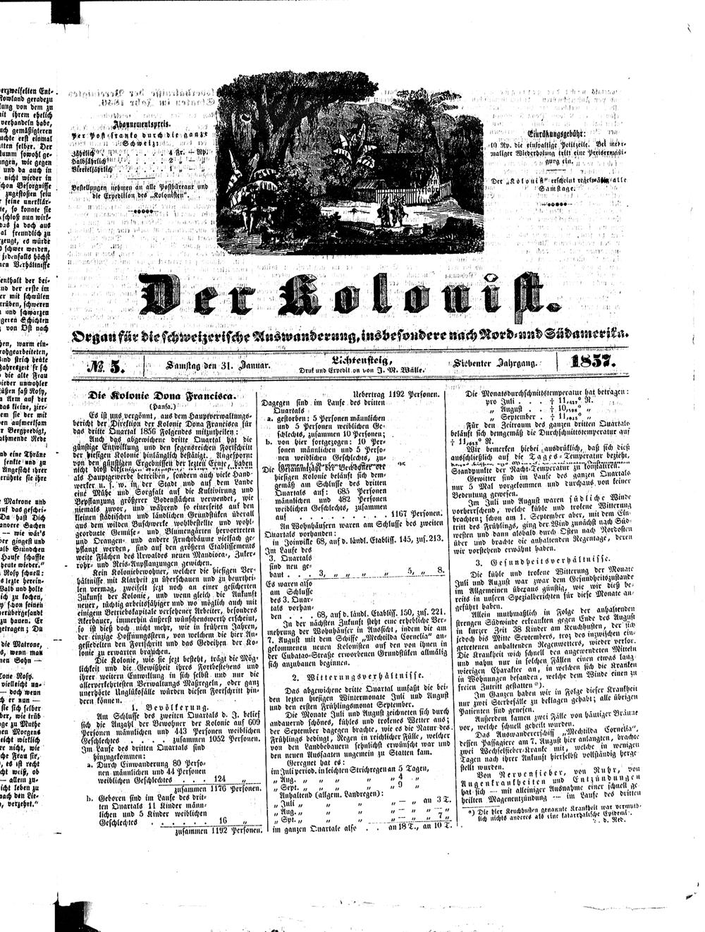 Der Kolonist : Organ zum Schutze, Beistand und Belehrung schweizerischer Auswanderer