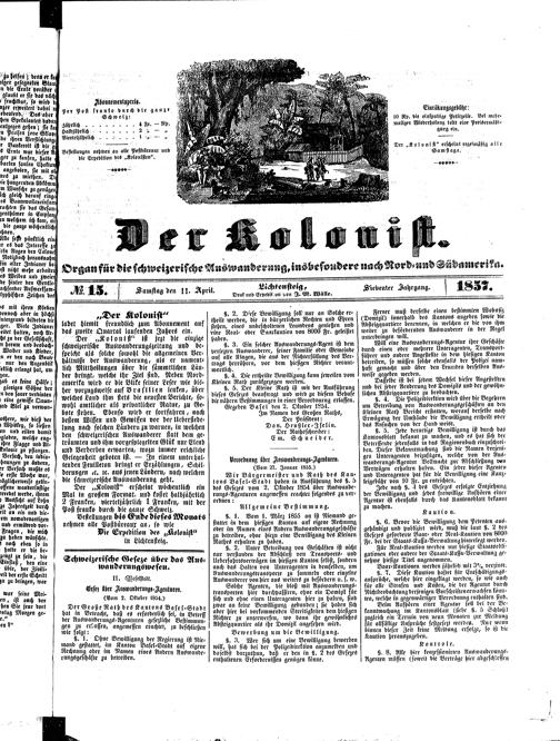 Der Kolonist. 1851-1857
