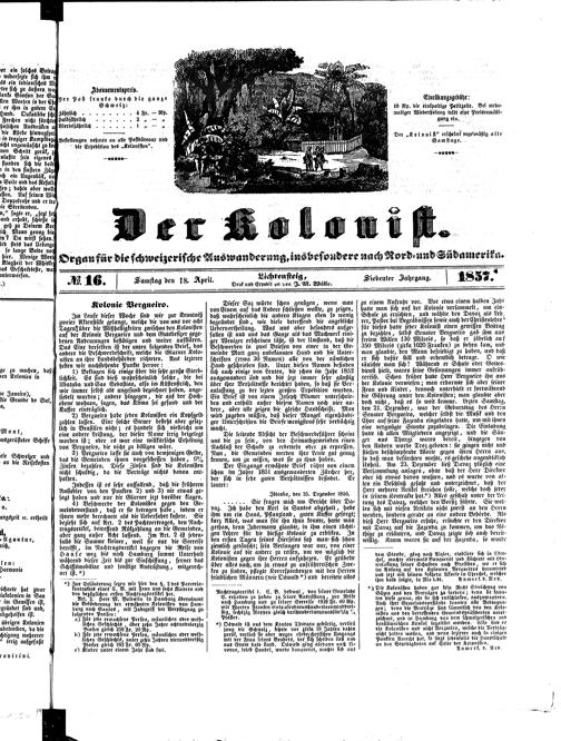Der Kolonist : Organ zum Schutze, Beistand und Belehrung schweizerischer Auswanderer