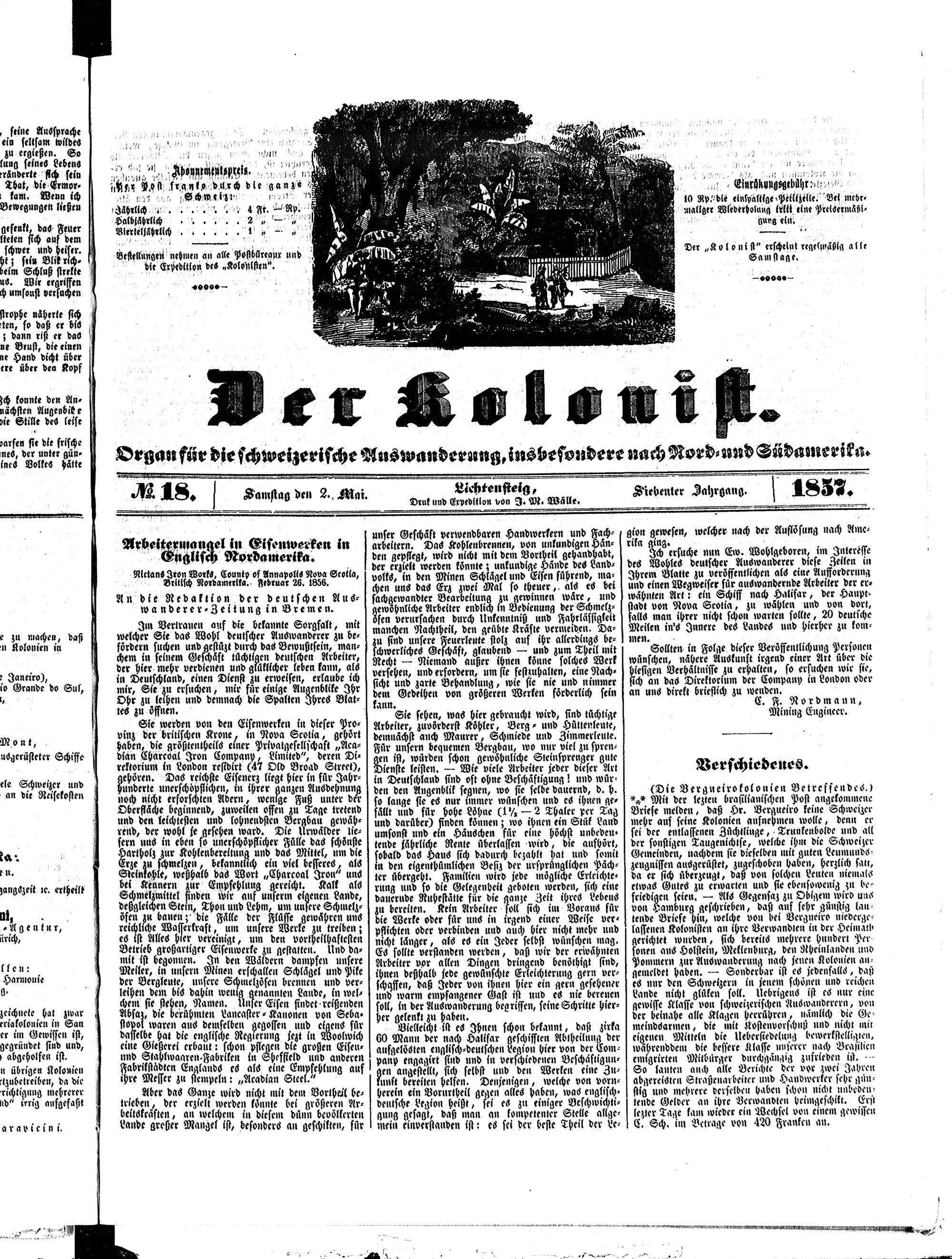 Der Kolonist. 1851-1857