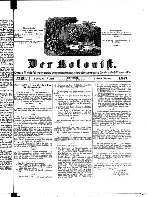 Der Kolonist : Organ zum Schutze, Beistand und Belehrung schweizerischer Auswanderer