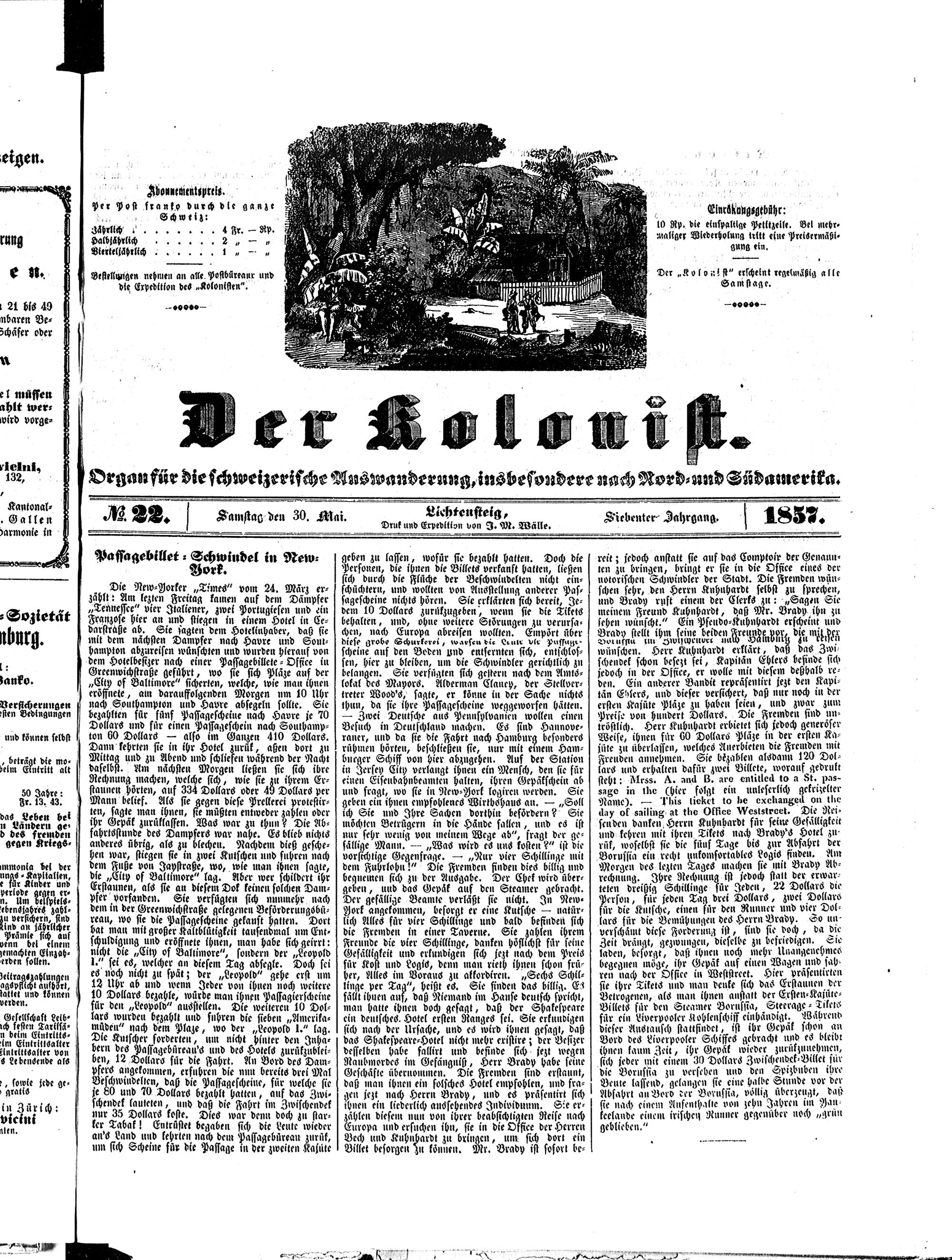 Der Kolonist. 1851-1857