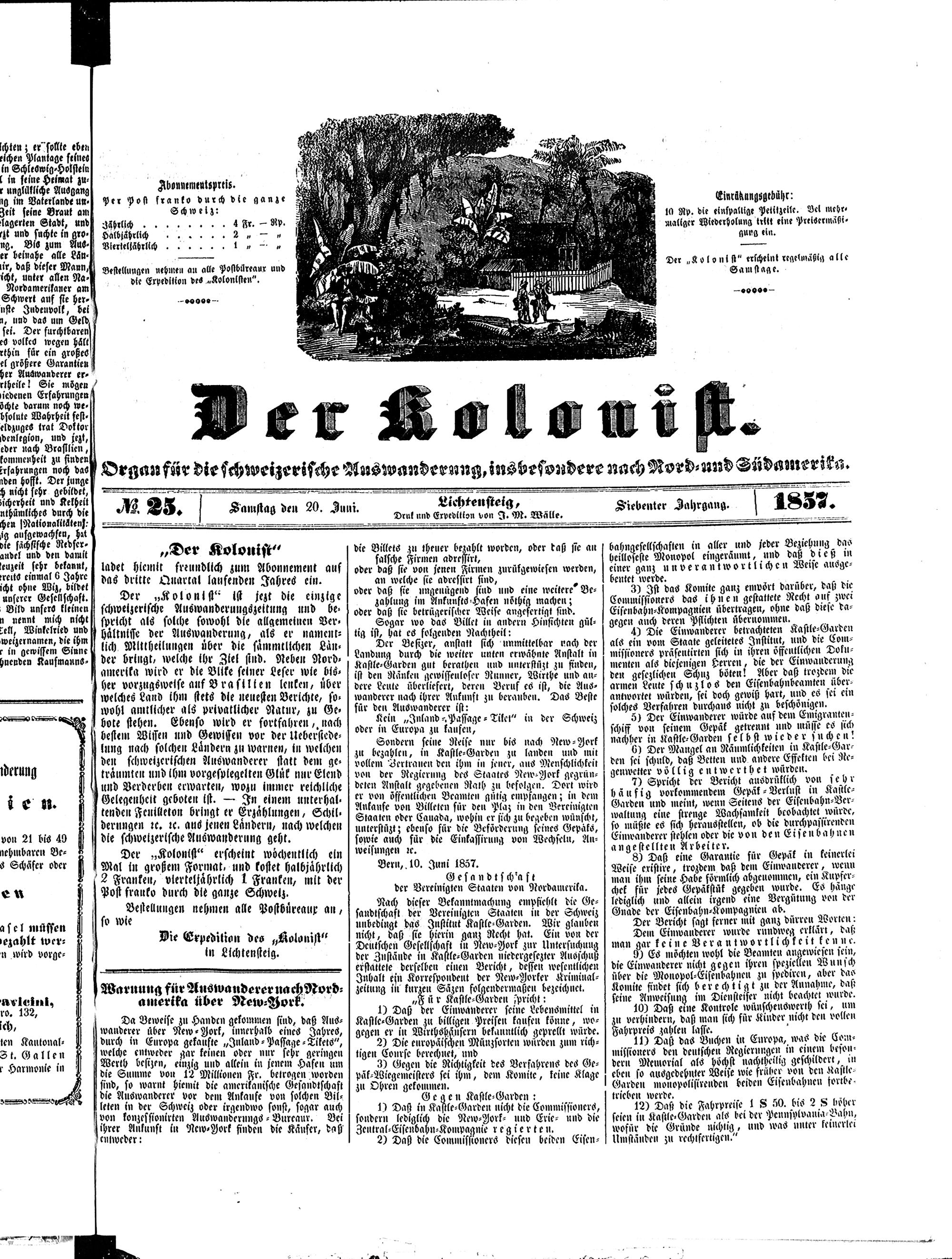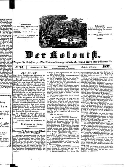 Der Kolonist. 1851-1857