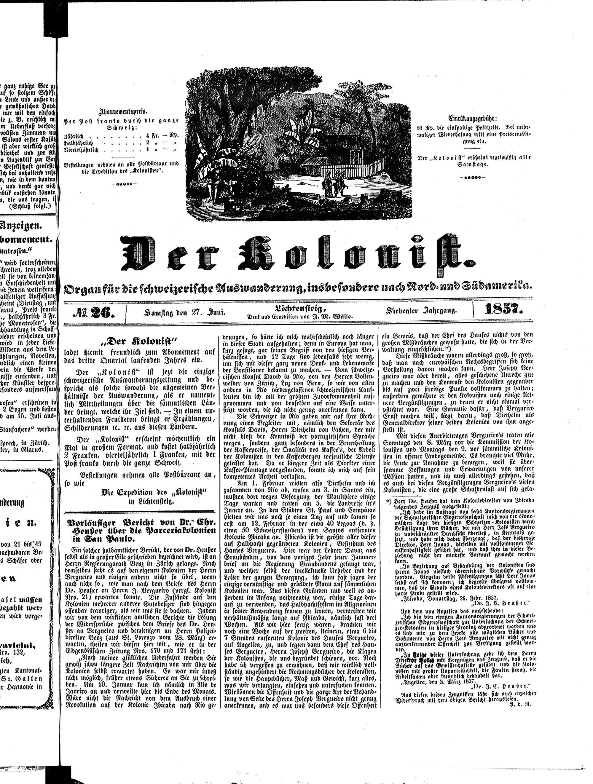 Der Kolonist : Organ zum Schutze, Beistand und Belehrung schweizerischer Auswanderer