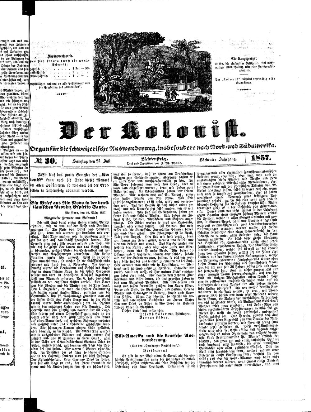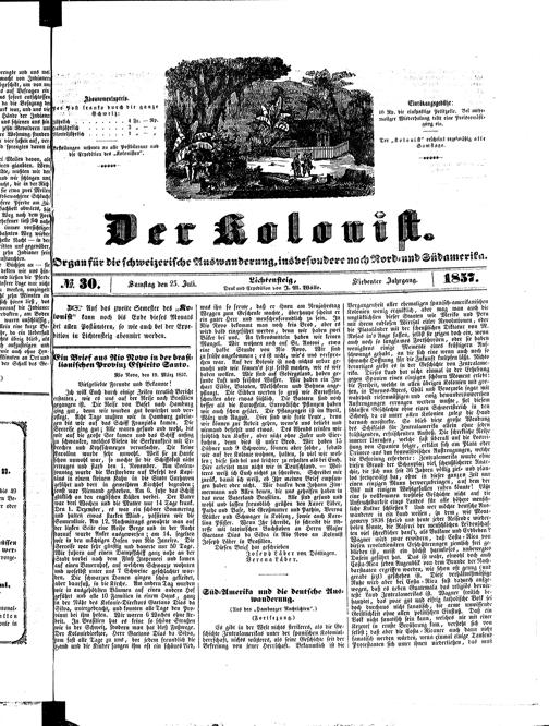 Der Kolonist : Organ zum Schutze, Beistand und Belehrung schweizerischer Auswanderer