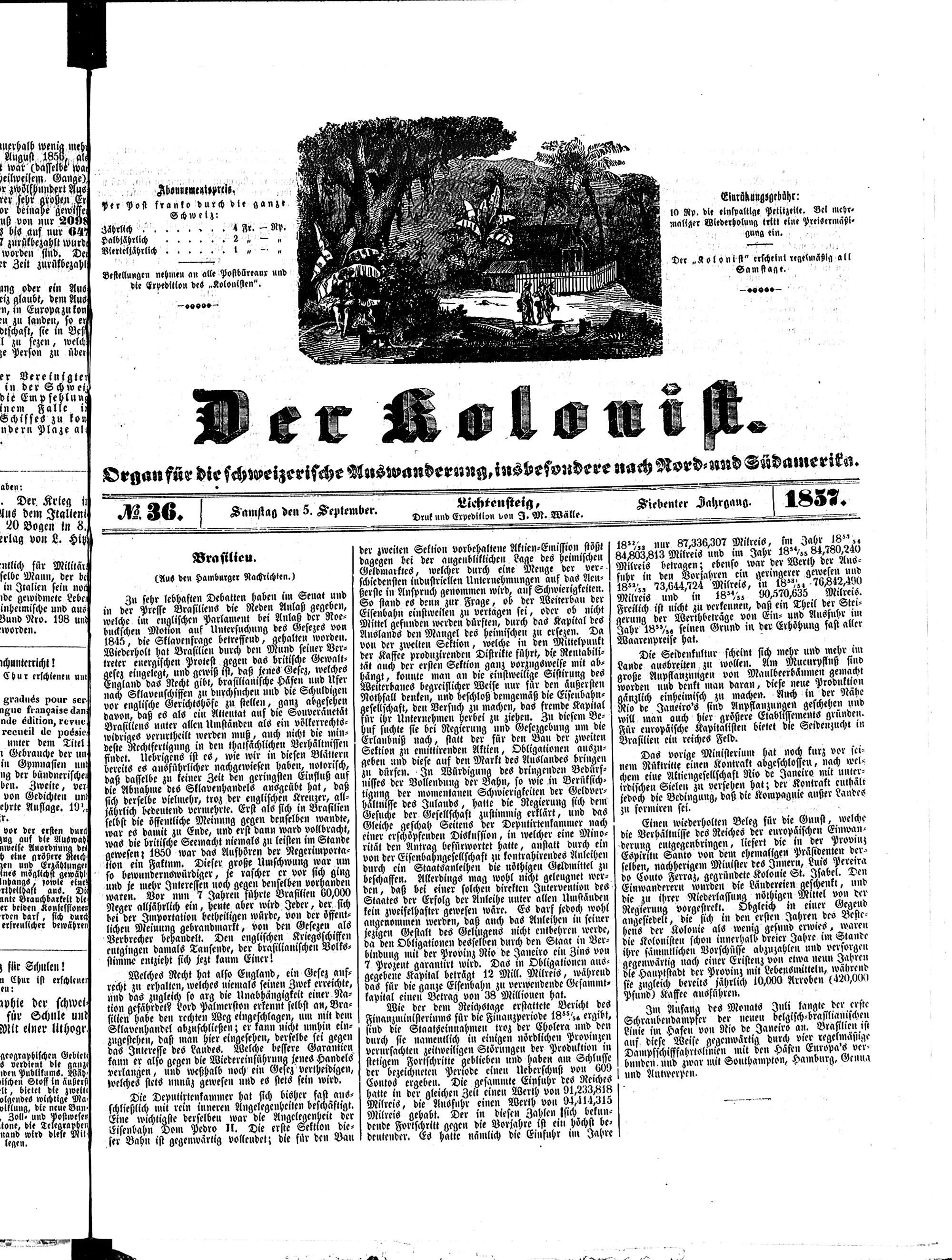 Der Kolonist. 1851-1857