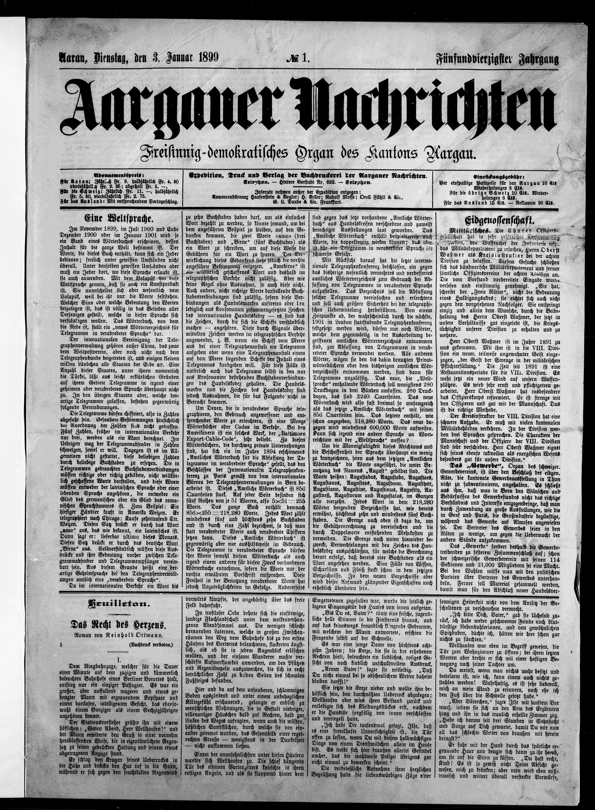 Aargauer Nachrichten : Freisinning-demokratisches Organ des Kantons Aargau